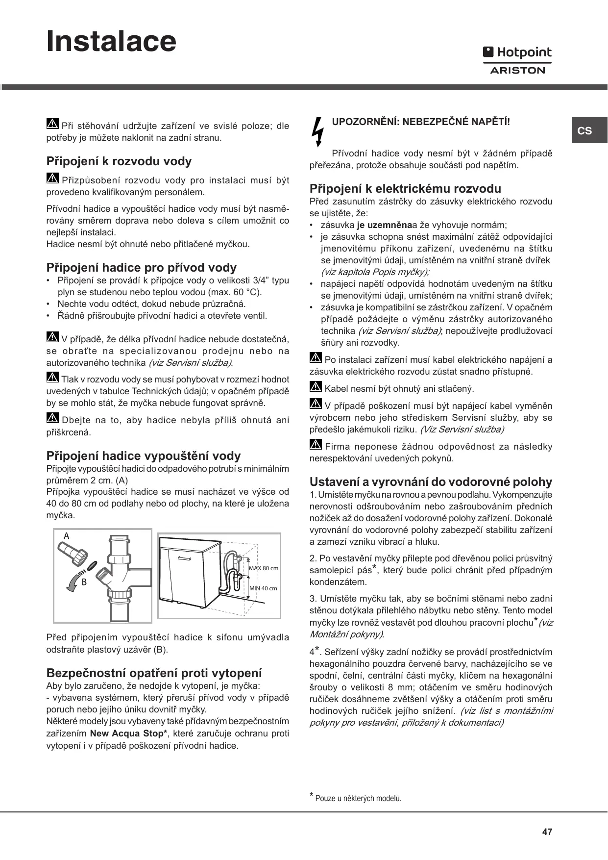 Opatrenia a rady, 7-8 Lire attentivement les instructions : elles fournissent des conseils importants sur l’installation, l’utilisation et la sécurité de l’appareil. Cet appareil est conçu pour un usage domestique ou autres applications similaires, telles que : - fermes ; - utilisation par les clients d’hôtels, de motels ou autres locaux de type résidentiel ; - chambres d’hôtes. Déballer l’appareil et s’assurer qu’il n’a pas été endommagé pendant le transport. S’il est abîmé, ne pas le raccorder et contacter le revendeur.