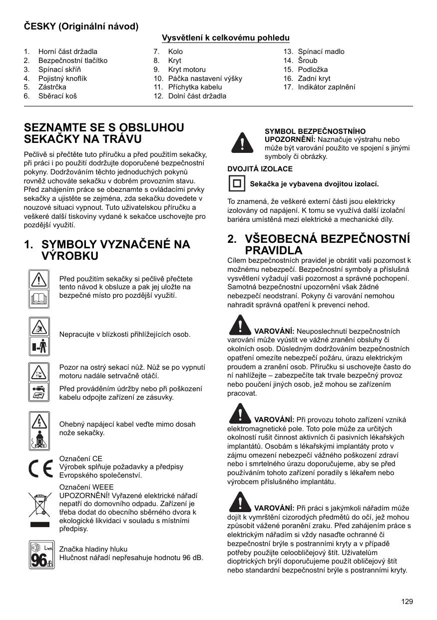 EN 55014-1, EN 55014-2, EN 61000-3-2, EN 61000-3-3 De technische documentatie wordt bewaard door: Dolmar GmbH, Jenfelder Straße 38, Abteilung FZ, D-22045 Hamburg SÍMBOLO DE ALERTA DE SEGURIDAD: Indica que se debe tener precaución o seguir una advertencia en conjunción con otros símbolos o imágenes. DOBLE AISLAMIENTO La cortadora de césped cuenta con doble aislamiento. Esto significa que todas las piezas externas están aisladas eléctricamente de la fuente de alimentación. Esto se consigue colocando una barrera aislante adicional entre las piezas eléctricas y mecánicas.