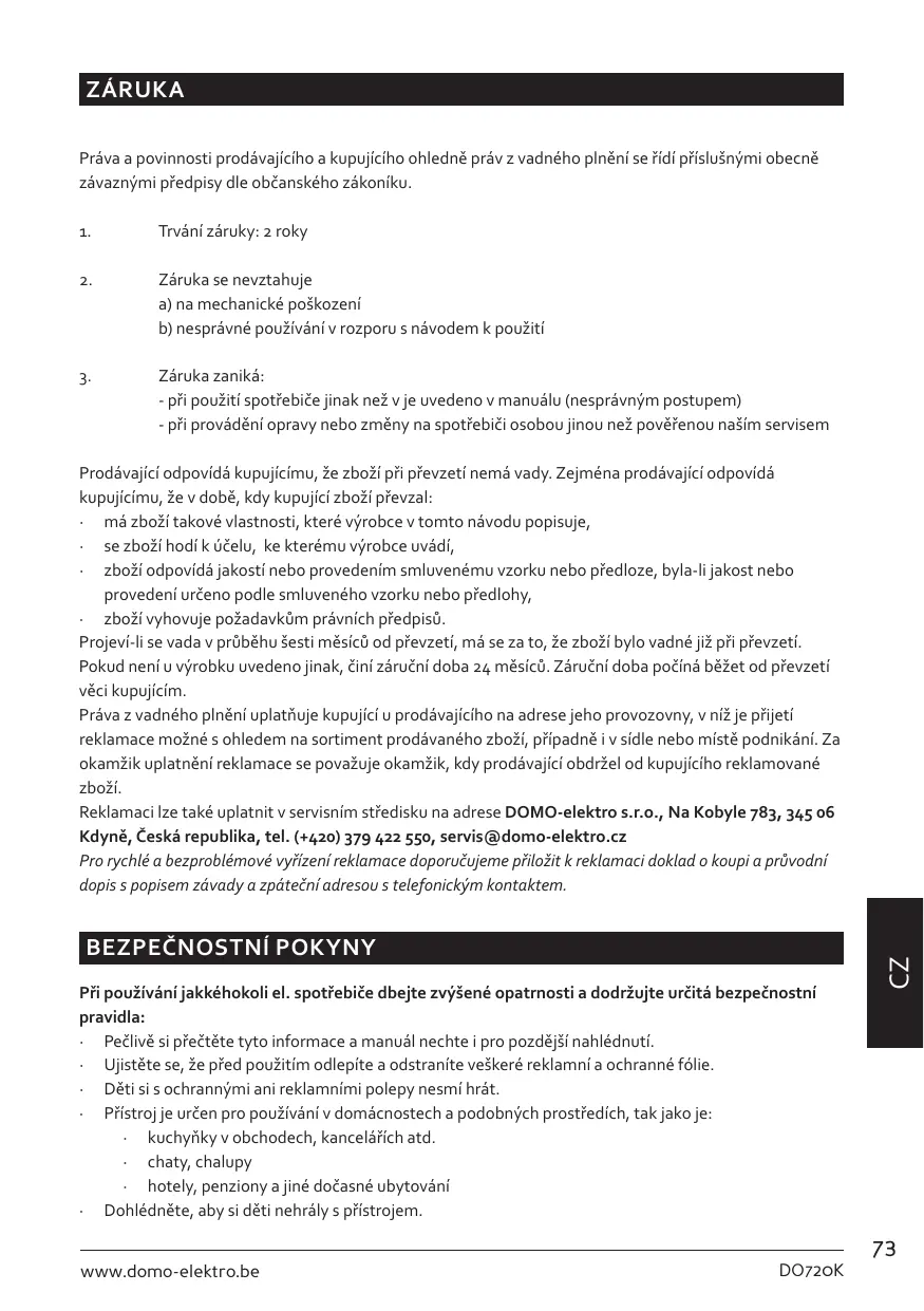 NÁVOD K OBSLUZE DO720K DOMO