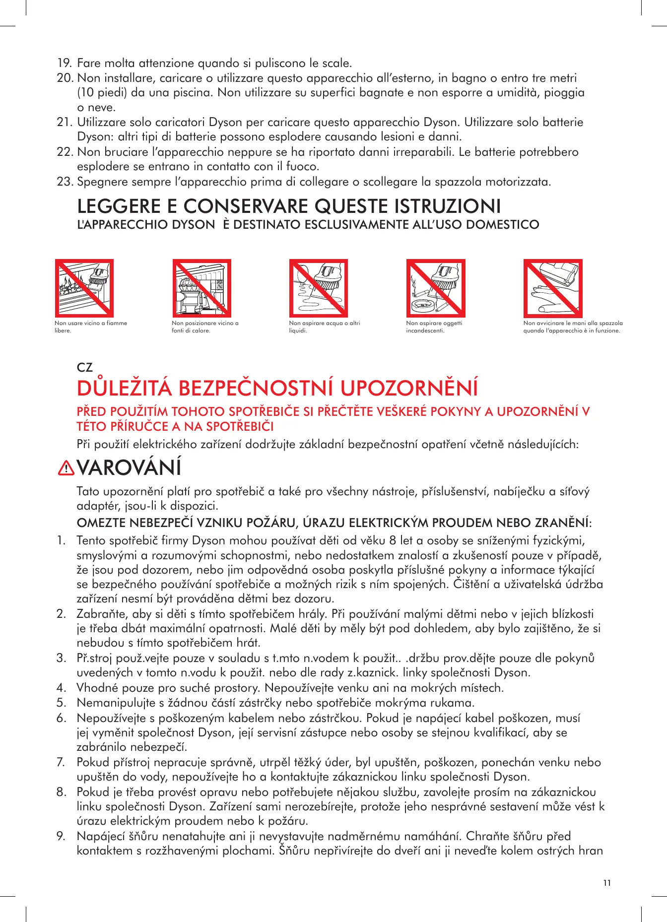 LIRE ATTENTIVEMENT ET CONSERVER CES CONSIGNES CET APPAREIL DYSON EST EXCLUSIVEMENT DESTINÉ À UN USAGE DOMESTIQUE Ne pas utiliser près de flammes nues.