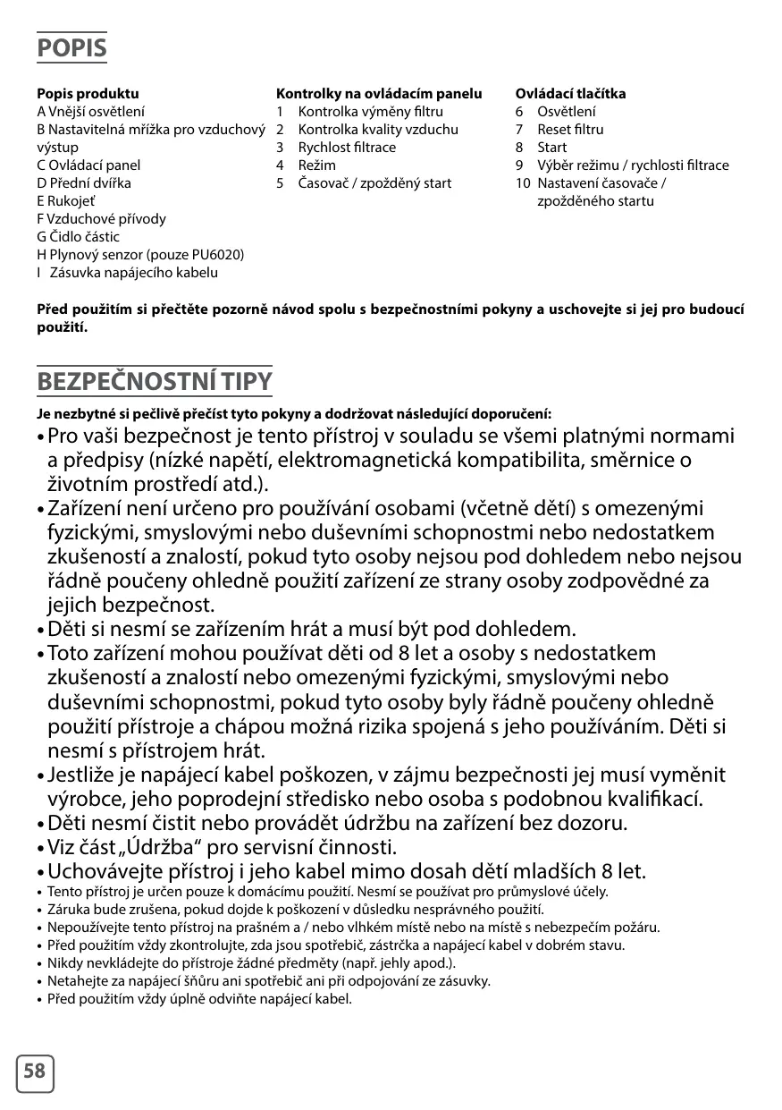 NÁVOD K OBSLUZE INTENSE PURE AIR PU4010 ROWENTA