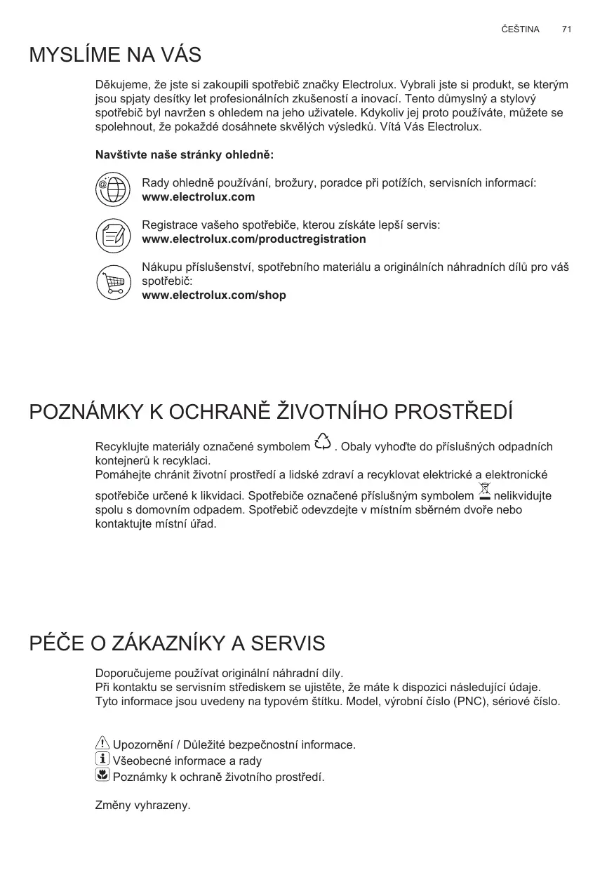 Rady ohledné používání, brožury, poradce pri potížích, servisních informáci: www.electrolux.com