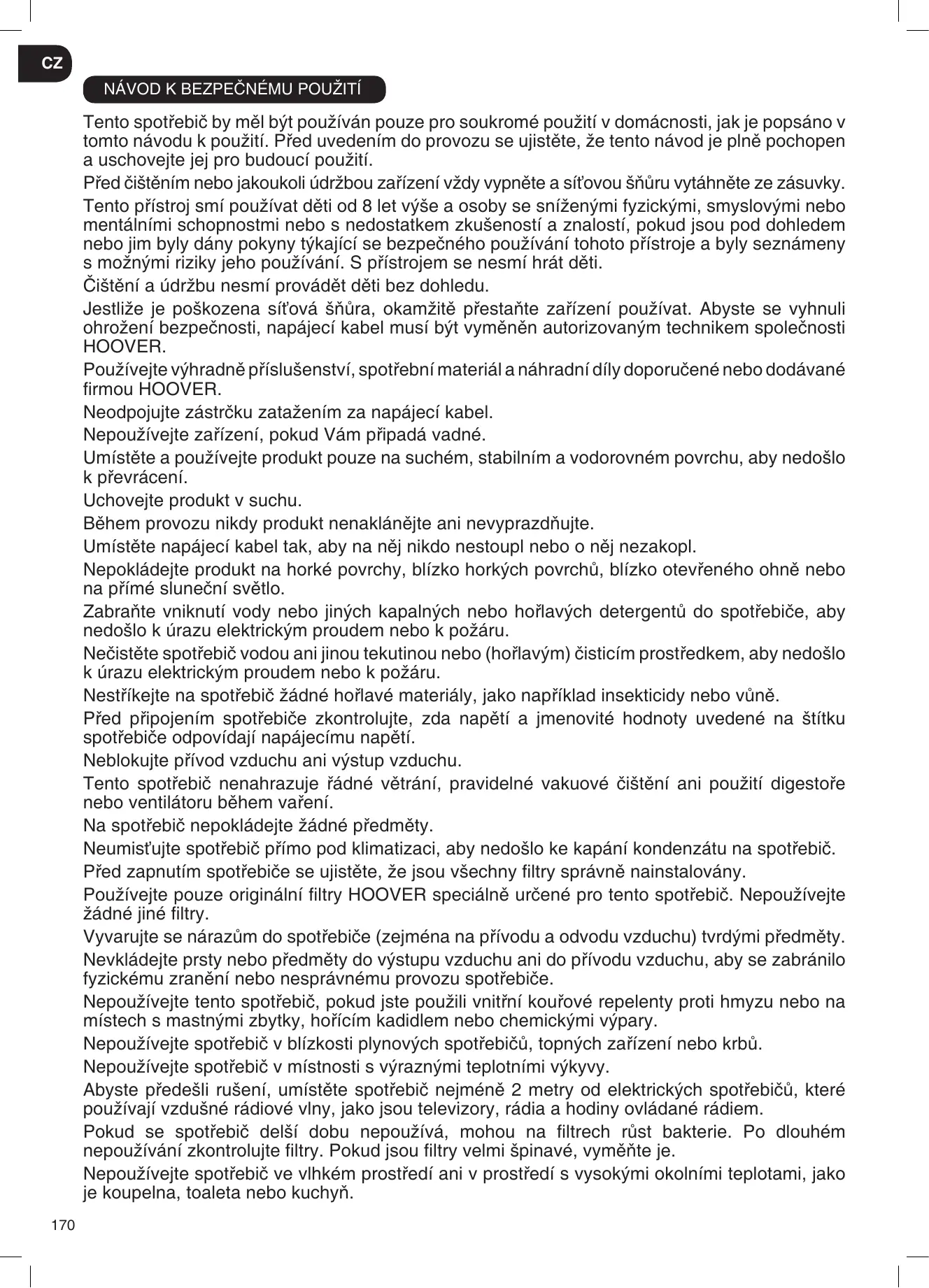 NÁVOD K OBSLUZE HHP55CA011 HOOVER