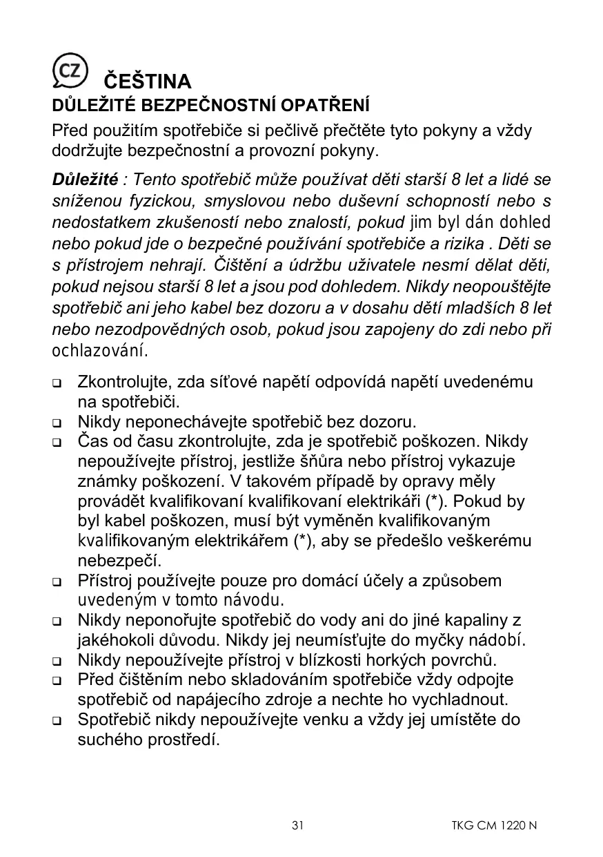 NÁVOD K OBSLUZE TGK CM 1220 KALORIK