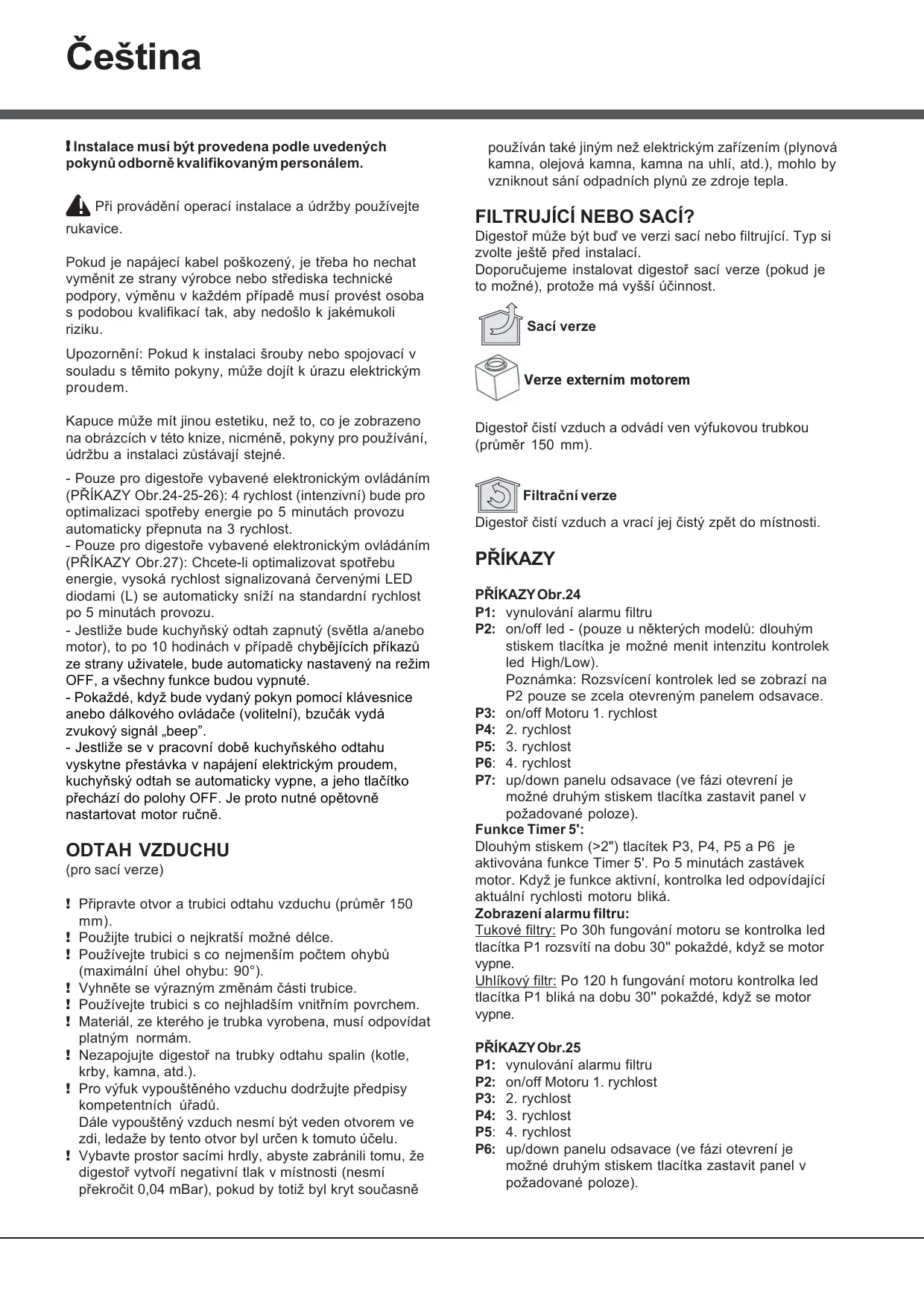 Doporucjeme instalovat digestoš sací verze (pokud je to mozné), protoze má vyšíćinnost.