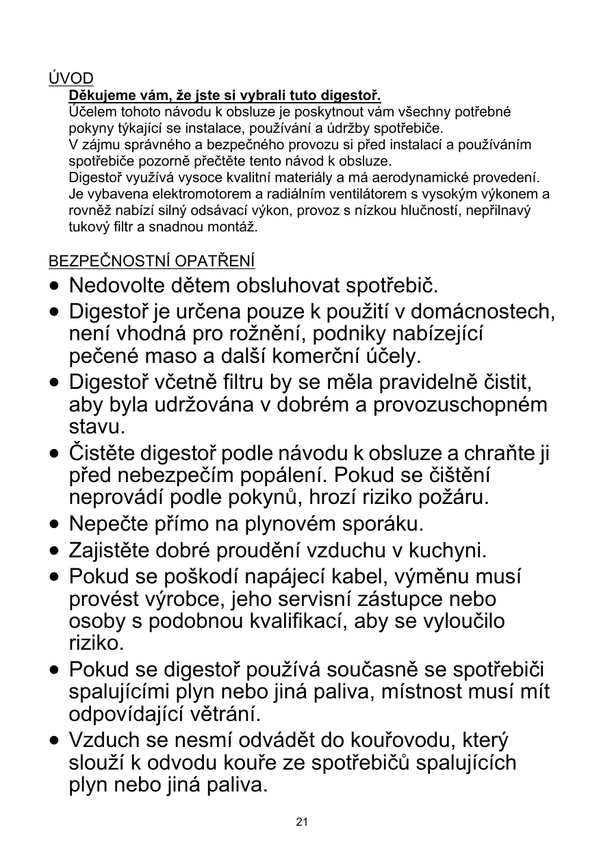 Évitez la cuisson directe de la gazinière. Maintenez une bonne circulation d'air dans la cuisine. Si le cordon d'alimentation est endommagé, faites-le changer par le fabricant, le service après-vente ou un technicien qualifié afin d'éviter tout risque d'accident. Il doit y avoir une ventilation appropriée dans la pièce si la hotte est utilisée en même temps que d’autres appareils brûlant du gaz ou d’autres 40