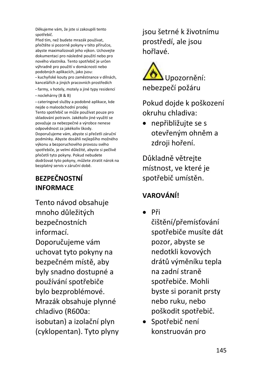 • Ne pas utiliser de dispositifs mécaniques ou d'autre équipement pour accélérer le processus de dégivrage. • Éviter impérativement l'utilisation de flamme nue ou d’un équipement électrique, comme des radiateurs, des nettoyeurs à vapeur, des bougies, des lampes à pétrole ou similaires pour accélérer la phase de dégivrage.