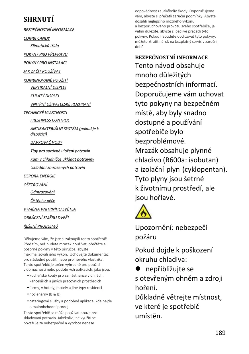 Nous vous suggérons de conserver ces instructions dans un endroit sûr pour une référence ultérieure aisée et une bonne utilisation de l’appareil. Ce réfrigérateur contient un gaz réfrigérant (R600a : isobutane) et un gaz isolant (cyclopentane), qui présentent une compatibilité élevée avec l'environnement mais des propriétés inflammables. Attention : risque d'incendie En cas de dommages du circuit de réfrigérant : Éviter des flammes ouvertes et des sources d'inflammation. Bien aérer la pièce dans 26