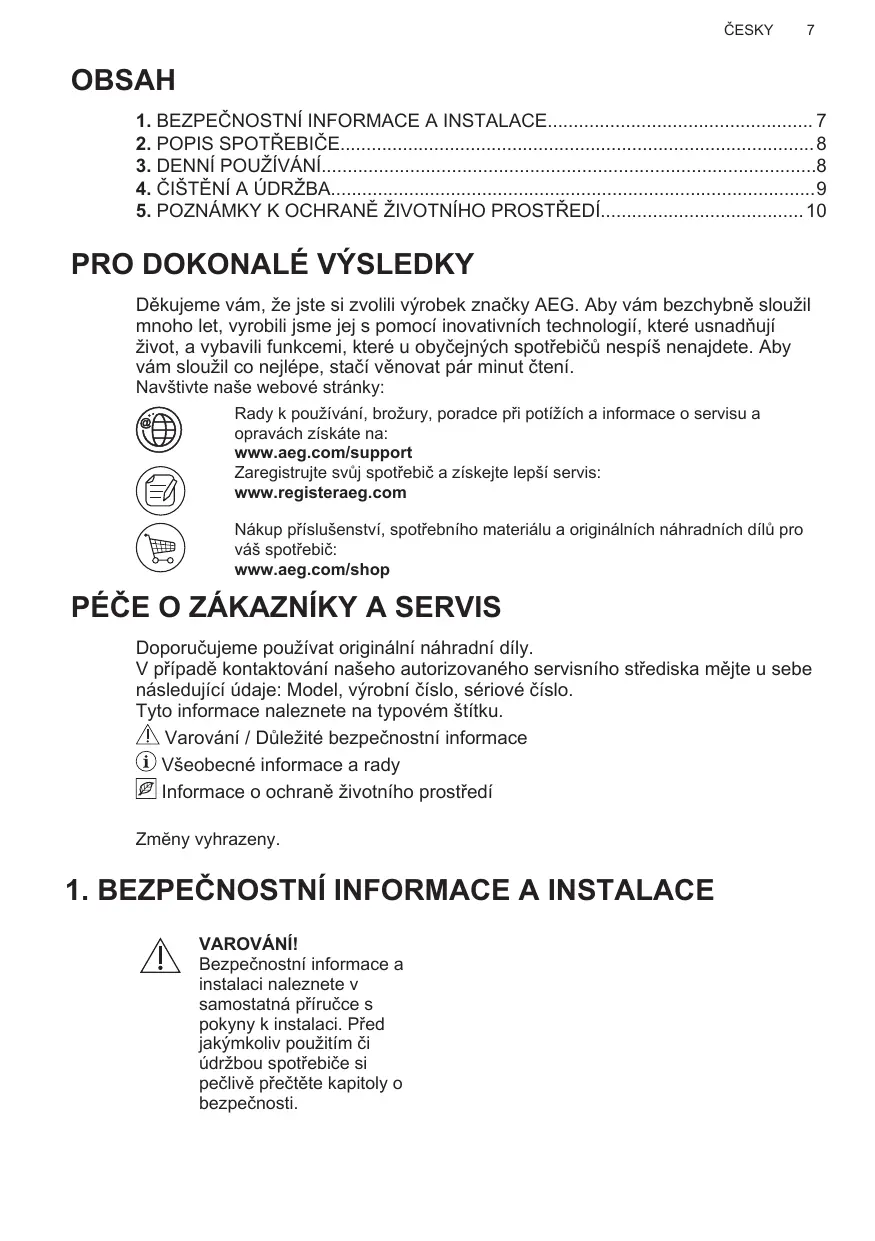 Enregistrer votre produit pour un meilleur service : www.registeraeg.com Acheter des accessoires, consommables et pièces de rechange d’origine pour votre appareil : www.aeg.com/shop