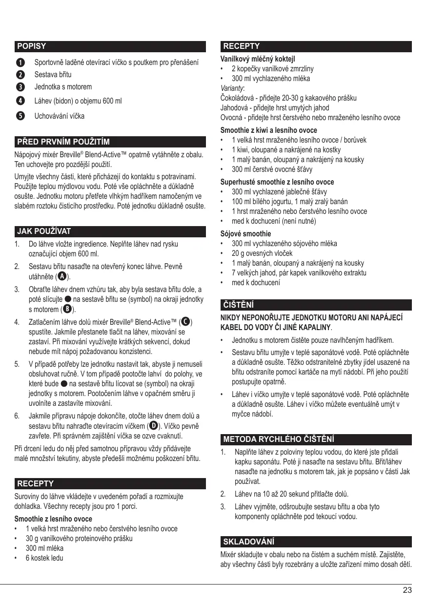 NÁVOD K OBSLUZE VBL097X-01 ACTIVE BREVILLE