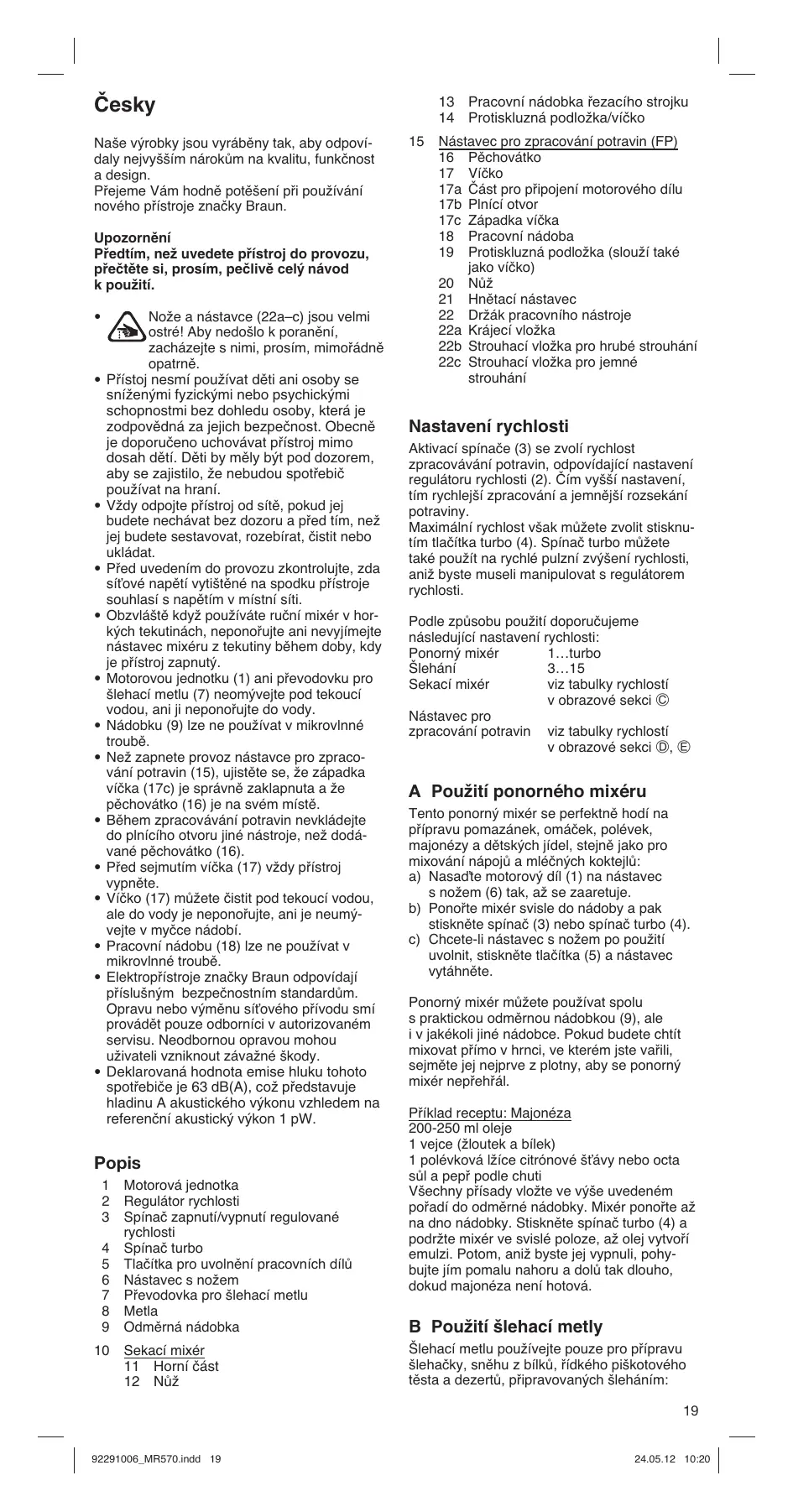 MULTIQUICK 5 MR 570 - Tyčový mixér BRAUN - Notice d'utilisation et mode d'emploi gratuit