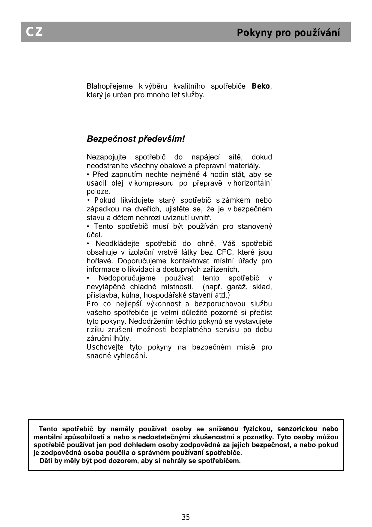 NÁVOD K OBSLUZE RCSA225K20W BEKO
