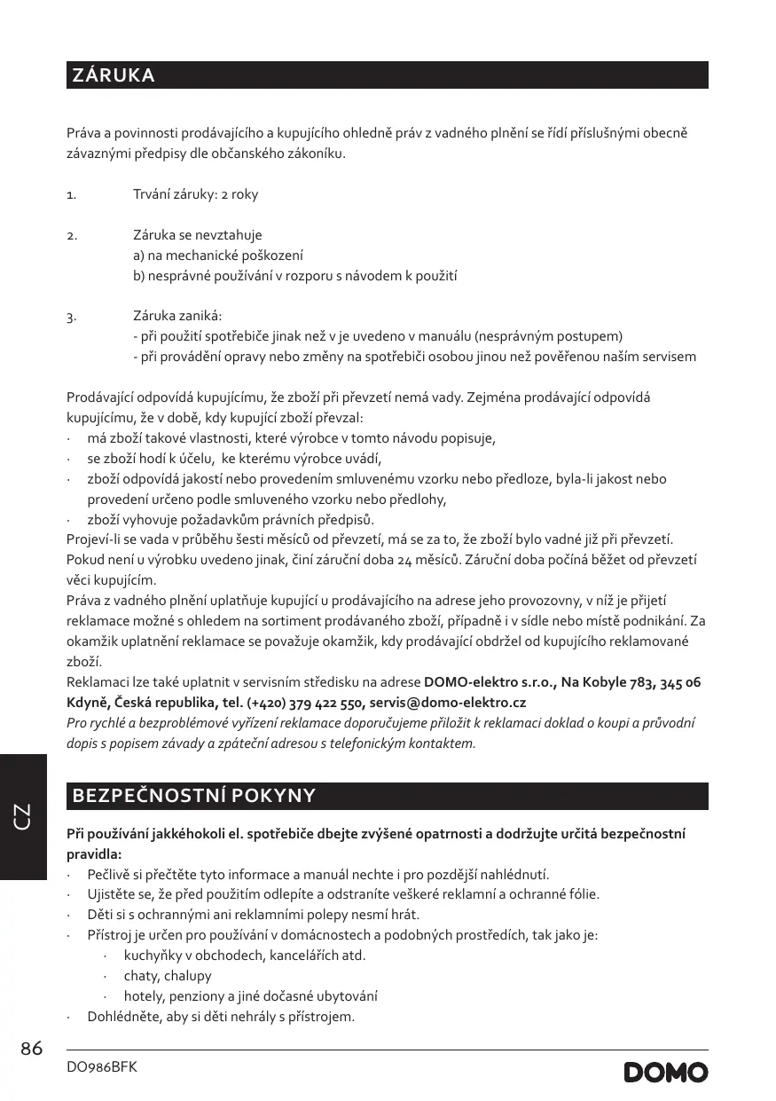 NÁVOD K OBSLUZE DO986BFK DOMO