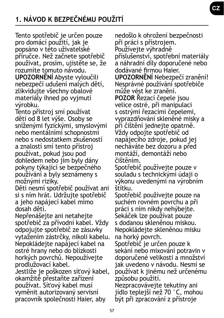 NÁVOD K OBSLUZE HCH5B1 HAIER