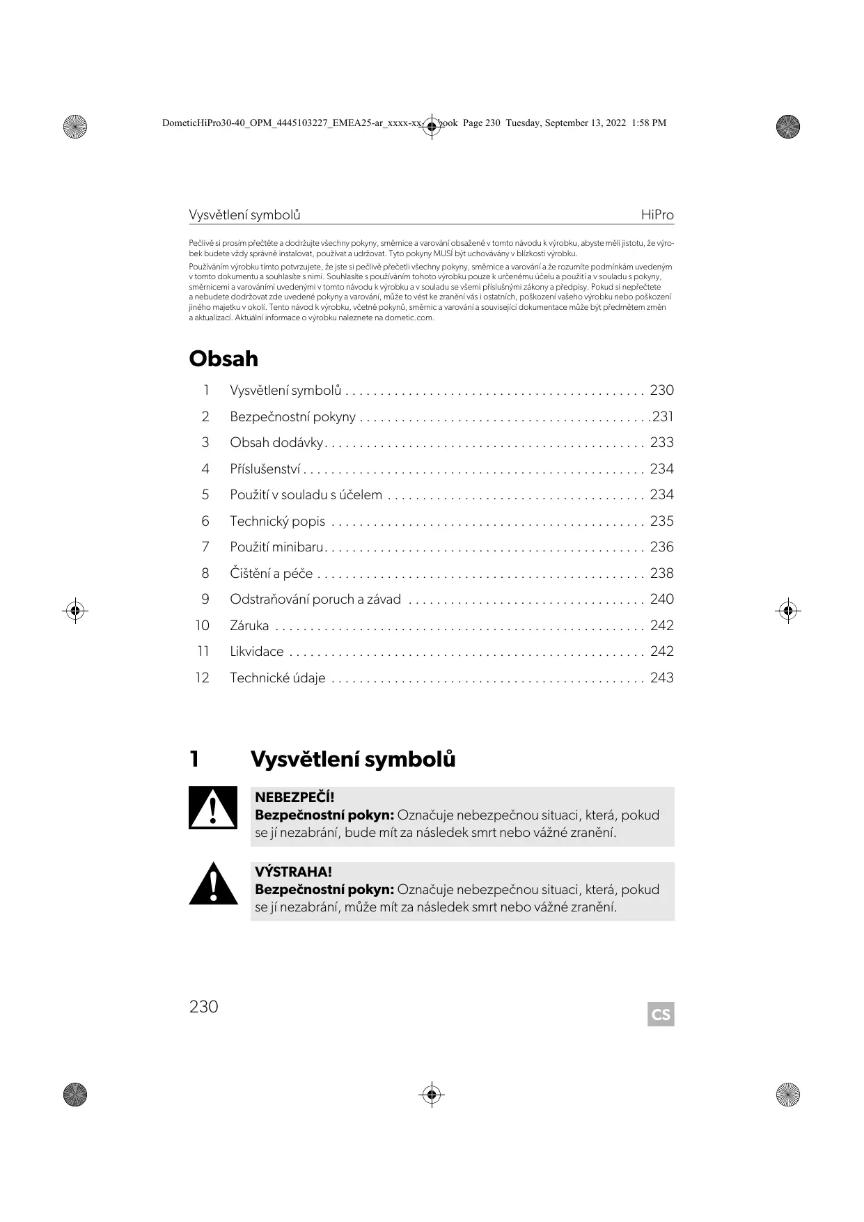 • Použití k jiným účelům, než jsou popsány v tomto návodu Společnost Dometic si vyhrazuje právo změnit vzhled a specifikace výrobku.