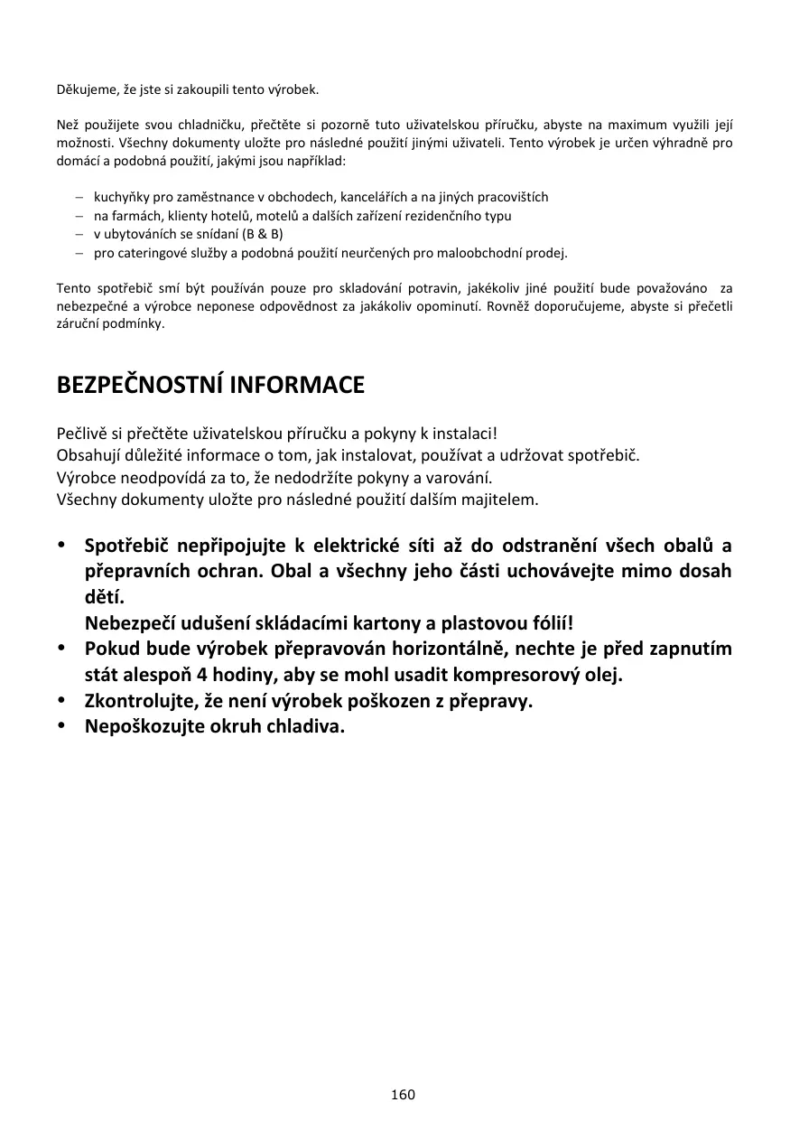 Avant d'utiliser votre réfrigérateur, veuillez lire attentivement ces instructions d'utilisation afin de maximiser ses performances. Conservez cette documentation pour pouvoir vous y référer ultérieurement ou pour les éventuels futurs propriétaires. Ce produit est destiné uniquement à un usage domestique ou autres usages similaires tels que :