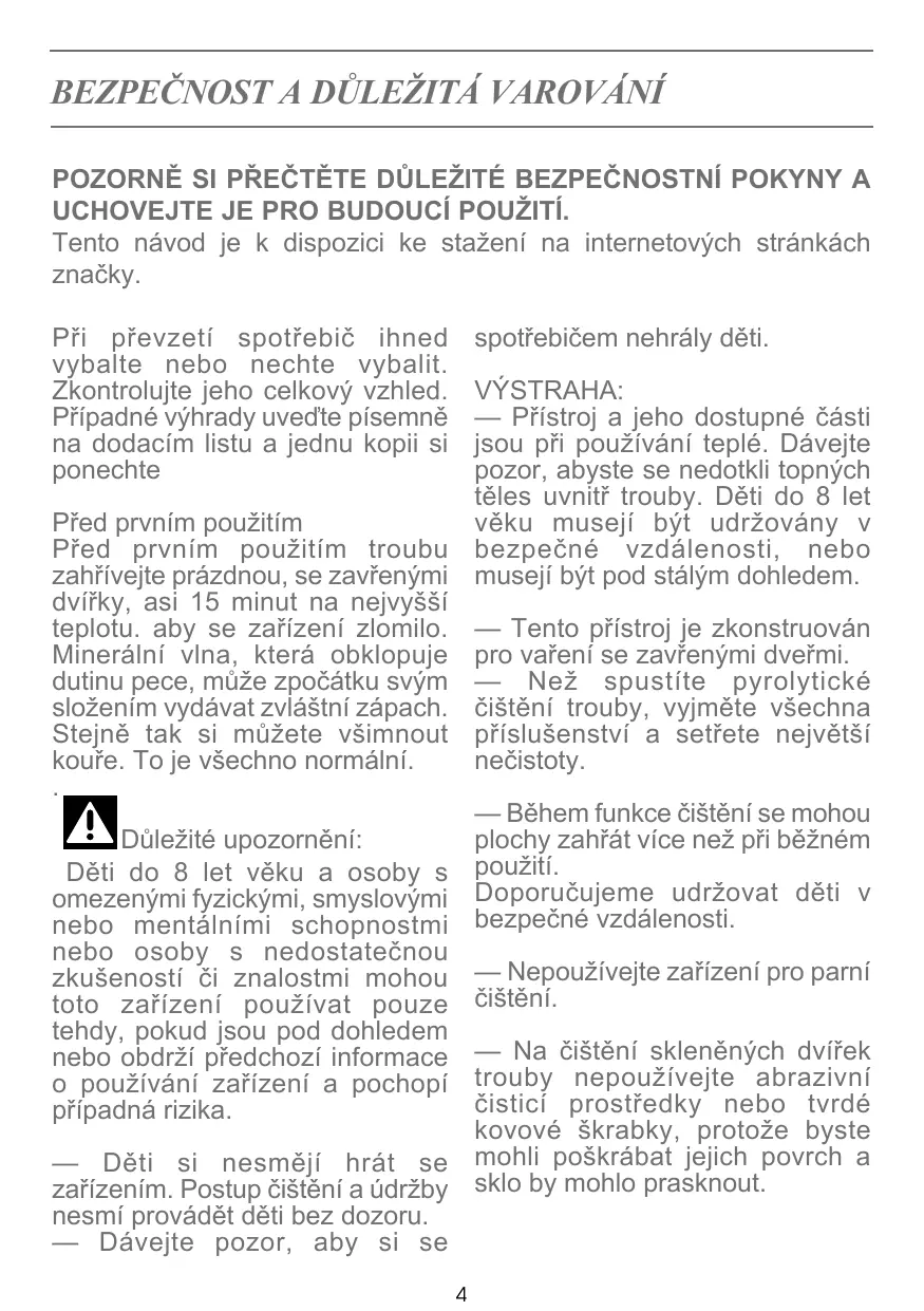 élevée. afin de roder l’appareil. La laine minérale qui entoure la cavité du four peut dégager au début une odeur particulière dûe à sa composition. De même, vous constaterez peut-être un dégagement de fumée. Tout ceci est normal.