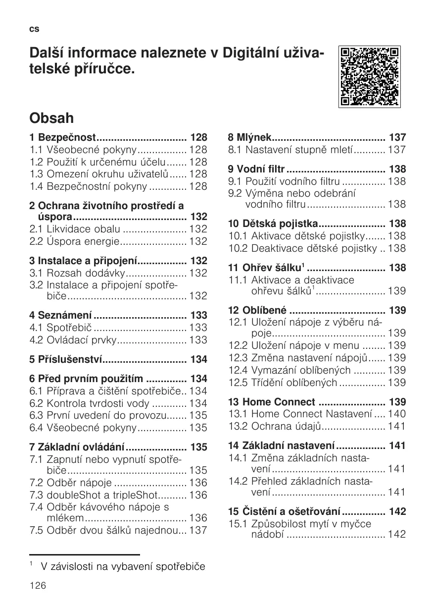 9.1 Mettre en place le filtre à eau 48 9.2 Changer ou retirer le filtre à eau 48 10 Sécurité enfants 48 10.1 Activer la sécurité enfants 48 10.2 Désactiver la sécurité enfants 49 11 Chauffage pour tasses1 49 11.1 Activer et désactiver le chauffe-tasses1 49 12 Favoris 49 12.1 Enregistrer une boisson à partir de la sélection des boissons 49 12.2 Enregistrer la boisson dans le menu 49 12.3 Modifier les réglages des boissons 49 12.4 Effacer un favori 50 12.5 Trier les favoris 50 13 Home Connect 50 13.1 Réglages Home Connect 50 13.2 Protection des données 51 15.1 Nettoyage au lave-vaisselle.... 53 15.2 Produits de nettoyage 54 15.3 Nettoyer l'appareil 54 15.4 Nettoyer la cuvette d‘égouttage et le bac à marc de café 55 15.5 Nettoyer le réservoir de lait .... 55 15.6 Programmes d‘entretien 55 16 Dépannage 57 17 Transport, stockage et élimination 63 17.1 Activer la protection contre le gel 63 17.2 Mettre au rebut un appareil usagé 63 18 Service après-vente 63 18.1 Numéro de produit (E-Nr.), numéro de fabrication (FD) et numéro de série (Z-Nr.) 64 18.2 Conditions de garantie 64 19 Données techniques 64 19.1 Informations concernant les logiciels libres et open source 64 20 Déclaration de conformité 65