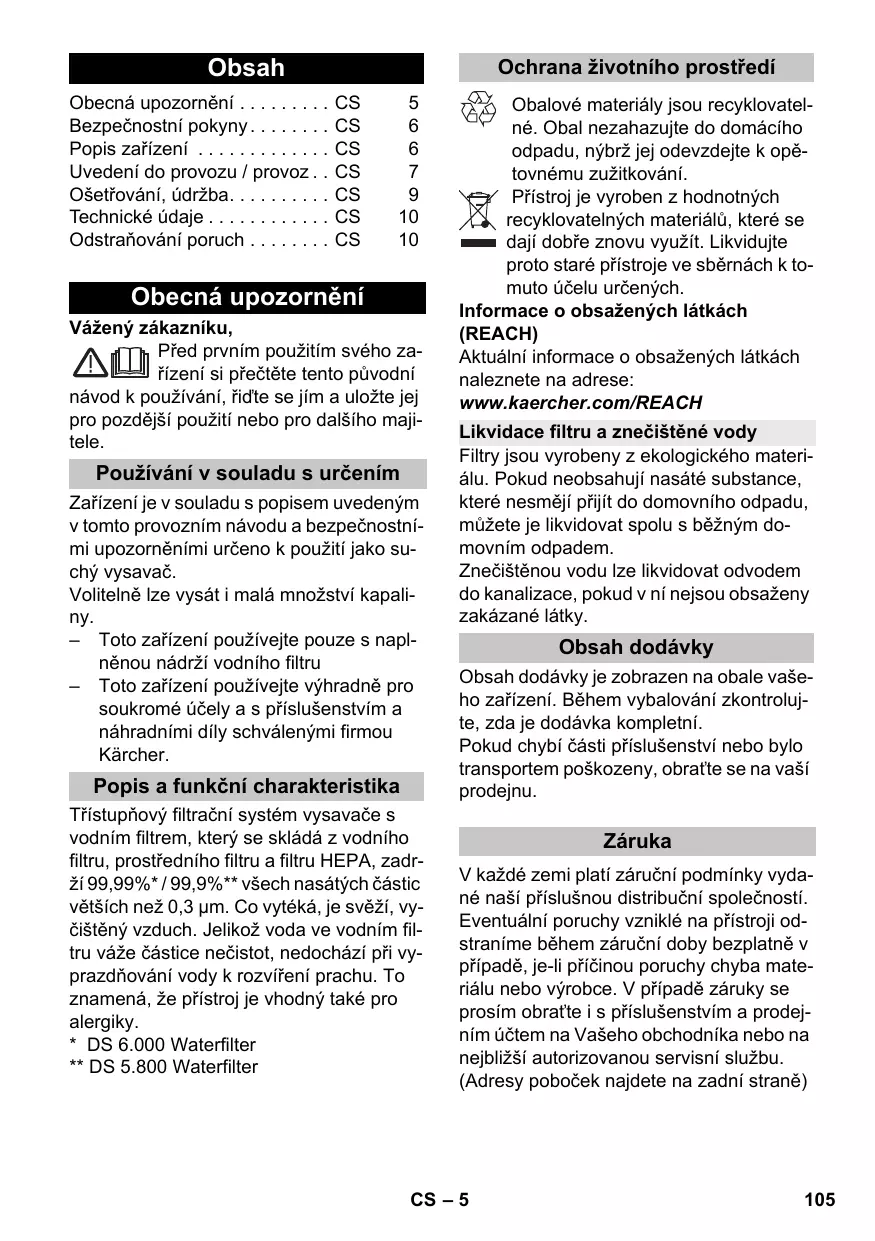 (REACH) Les informations actuelles relatives aux ingrédients se trouvent sous : www.kaercher.com/REACH Elimination du filtre et de l'eau sale Les filtres sont fabriqués en matériaux respectueux de l'environnement. S'ils ne contiennent aucune substance aspirée dont l'élimination est interdite dans les déchets ménagers, vous pouvez les jeter dans les déchets ordinaires. L'eau sale peut être éliminée dans l'écoulement, dans la mesure où elle ne contient pas de substances interdites.