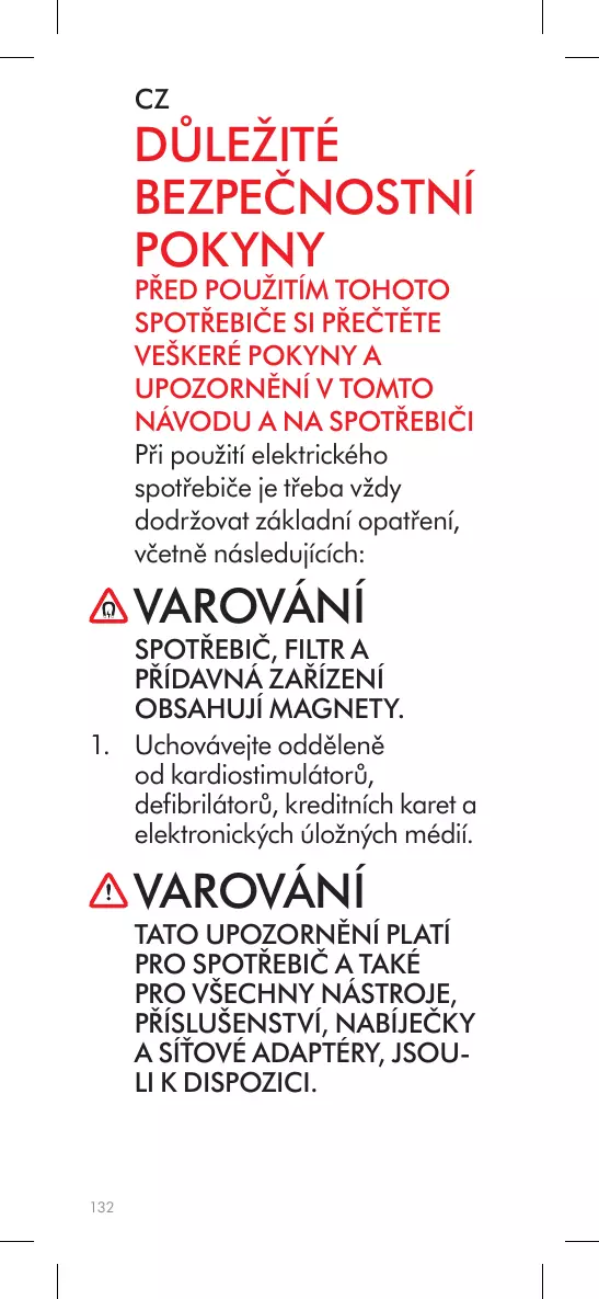 AVERTISSEMENT L’APPAREIL, LE FILTRE ET LES ACCESSOIRES CONTIENNENT DES AIMANTS. 1. Tenez l’appareil éloigné des stimulateurs cardiaques, des défibrillateurs, des cartes de crédit et des supports de stockage électroniques.