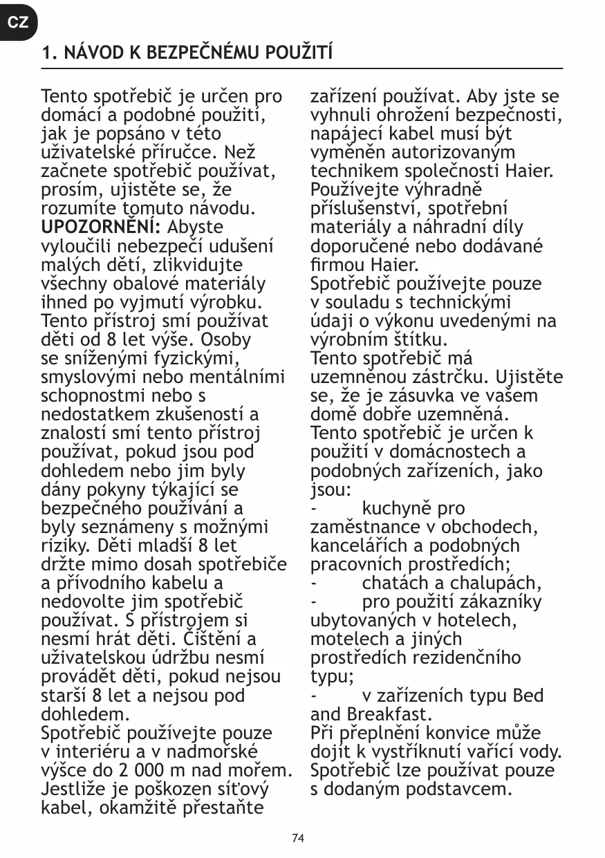 HKESA011 - Elektrická konvice HAIER - Notice d'utilisation et mode d'emploi gratuit