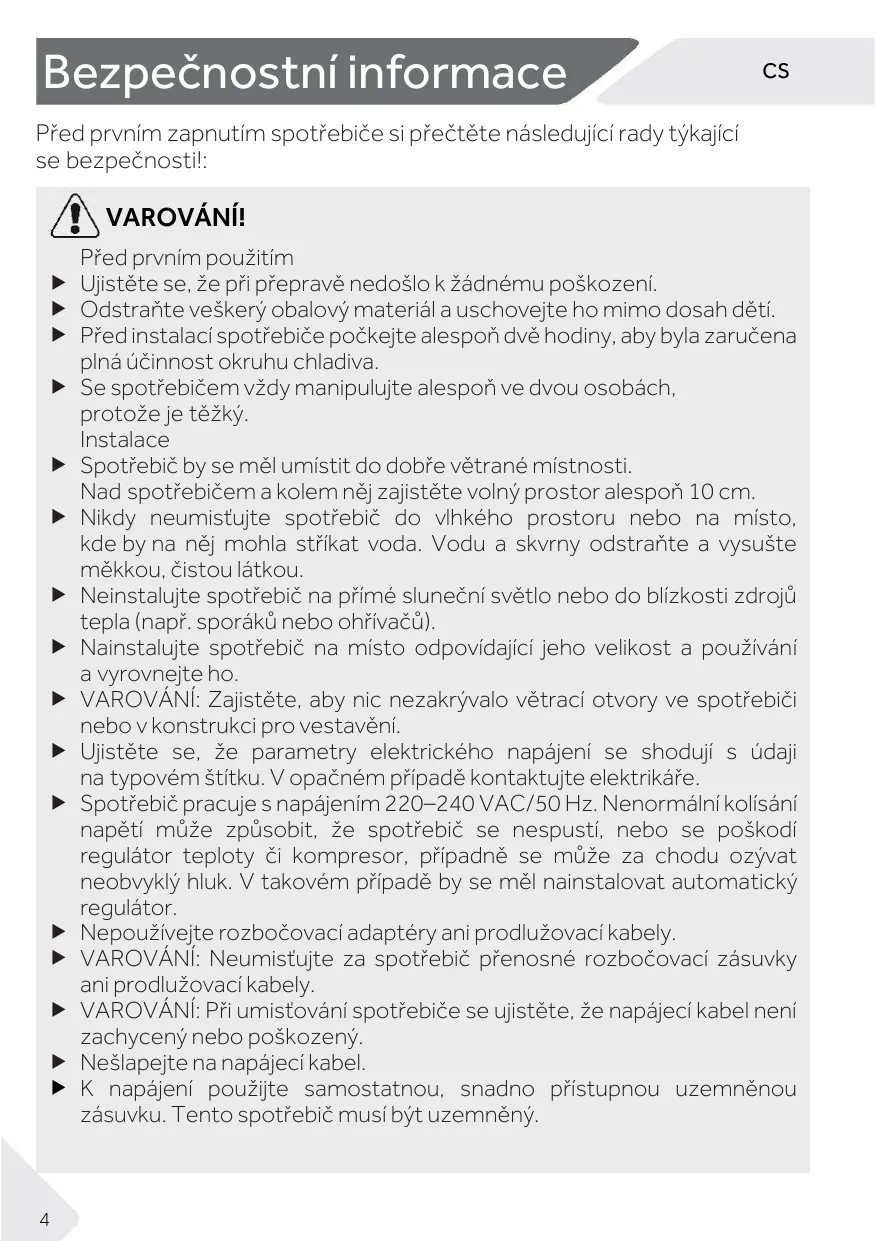 Nu folosiți pulberi de curățare sau alte produse de curățare abrazive. Nu spălați piesele detașabile în mașina de spălat vase. Nu răzuiți gheața cu obiecte ascuțite. Nu folosiți pulverizatoare, dispozitive electrice de încălzire precum radiatoare, uscătoare de păr, aparate de curățat cu abur sau alte surse de căldură, pentru a evita deteriorarea pieselor din plastic. AVERTISMENT: Nu utilizați dispozitive mecanice sau alte mijloace de a accelera procesul de decongelare, în afara celor recomandate de producător. În cazul în care cablul de alimentare este deteriorat, acesta trebuie înlocuit de către producător, agentul său de service sau persoane calificate similare, pentru a evita orice pericol.