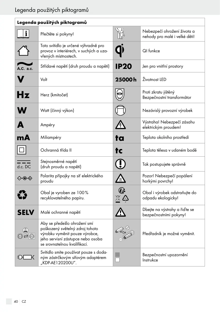 Aby se předešlo ohrožení smí poškozený světelný zdroj tohoto výrobku vyměnit pouze výrobce, jeho servisní zástupce nebo osoba se srovnatelnou kvalifikací.