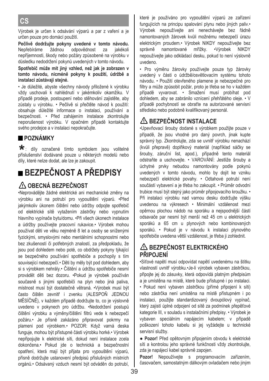 FR Le produit est conçu pour l’aspiration des fumées et des vapeurs de cuisson et est destiné au seul usage domestique.