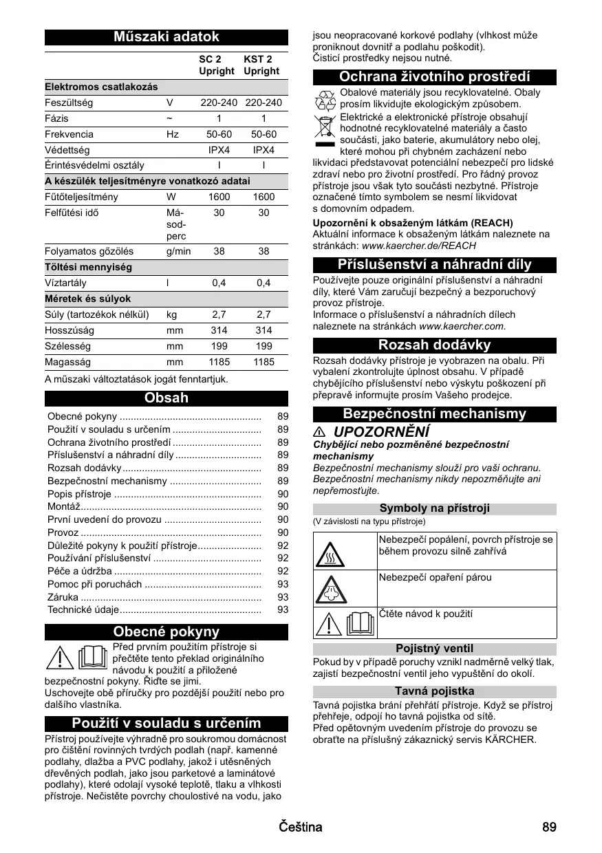 NÁVOD K OBSLUZE KST2 UPRIGHT EASYFIX KARCHER