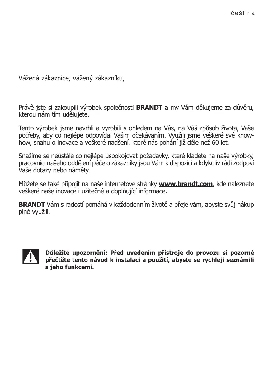 Müzete se také pripojit na naše internetové stránky www.brandt.com, kde naleznete veškeré naše inovace i uzitečné a doplůjíci informace.