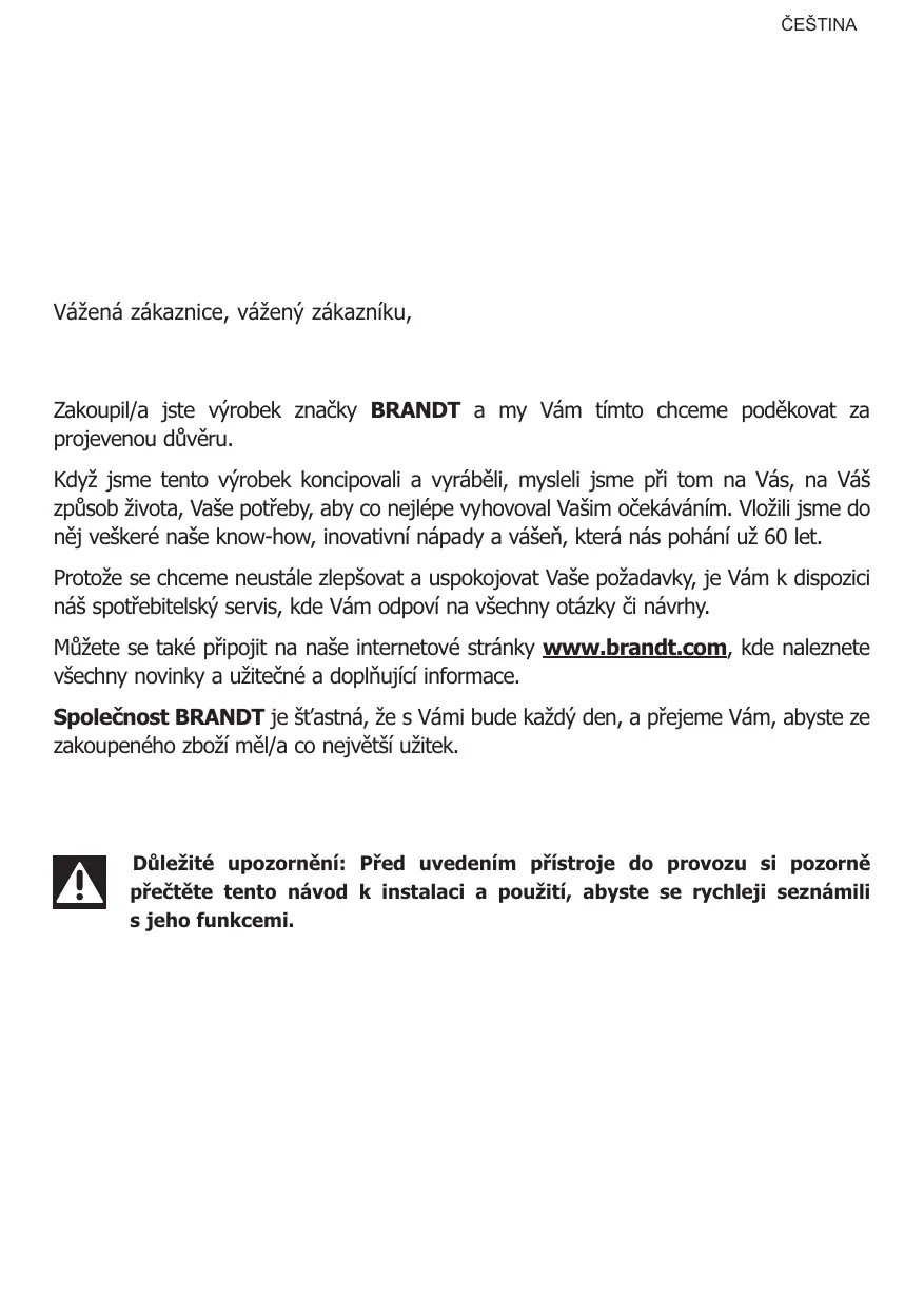 Connectez-vous aussi sur notre site www.brandt.com où vous trouverez nos dernières innovations, ainsi que des informations utiles et complémentaires.