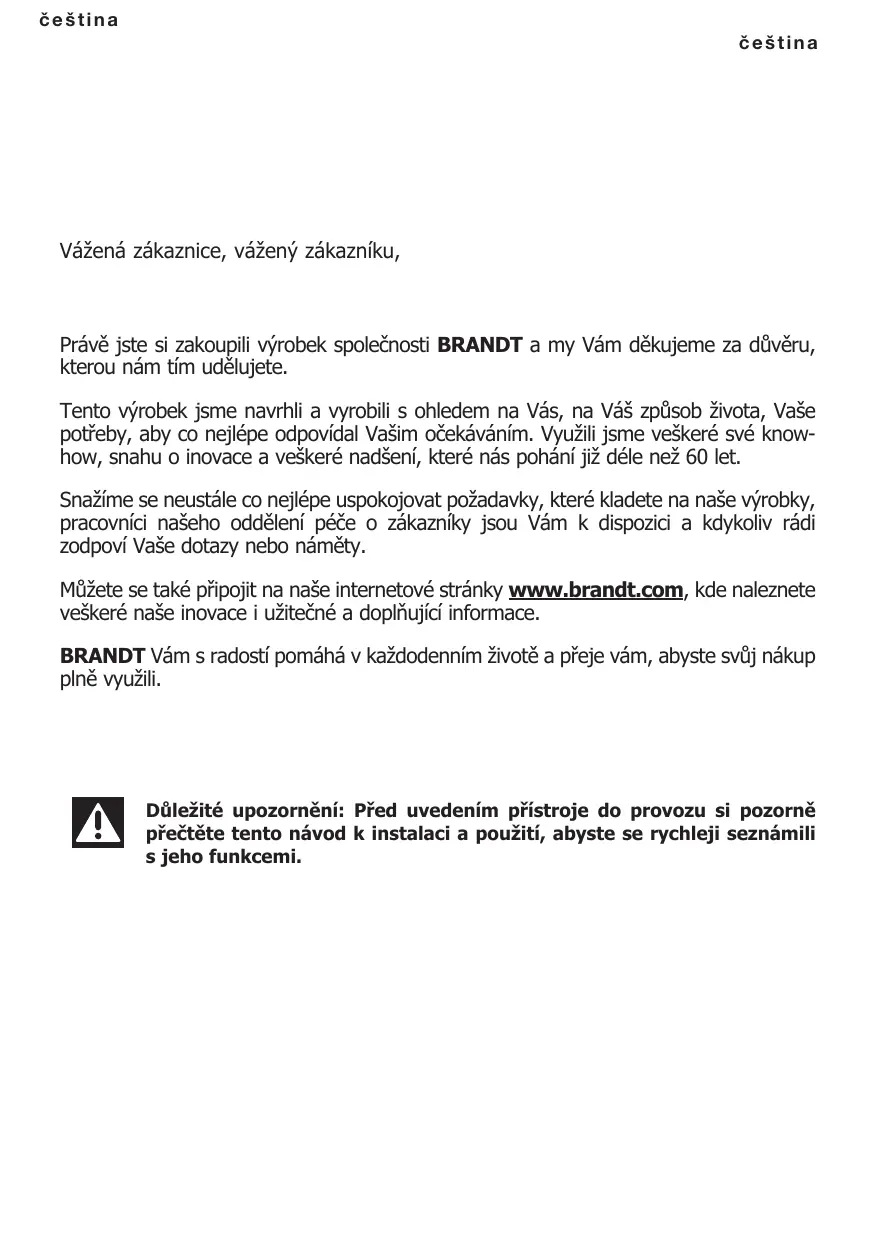 Mêete se také pripojit na naëe internetové stränky www.brandt.com, kde naleznete veëkeré naëe inovace i uZiteëné a doplñujici informace.