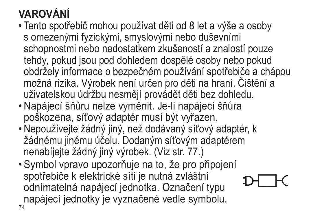 + Ne pas utiliser autre chose que l'adaptateur CA fourni pour quelque usage que ce soit. Et ne pas utiliser un autre produit