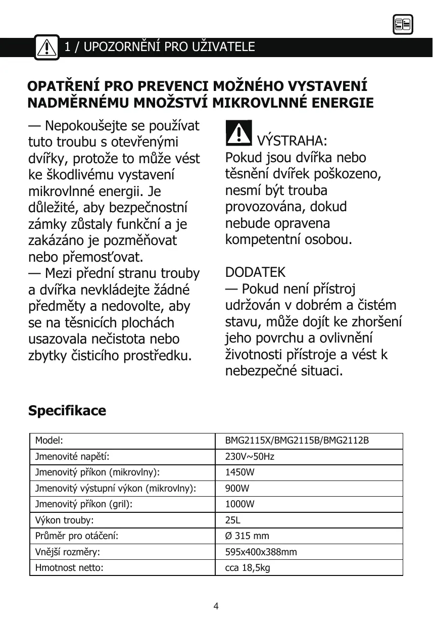 NÁVOD K OBSLUZE BMG2115B BRANDT