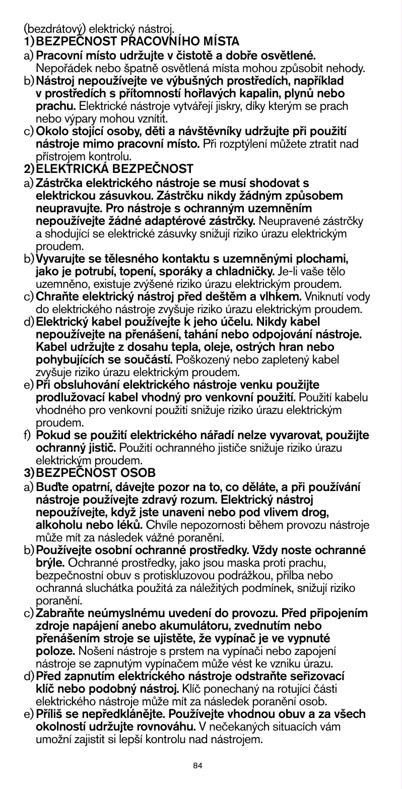 g)Utilisez l'outil électroportatif, les accessoires, les forets, etc. conformément à ces instructions en tenant compte des conditions de travail et du travail à effectuer. L'utilisation des outils électroportatifs à d'autres fins que celles prévues peut créer des situations dangereuses.