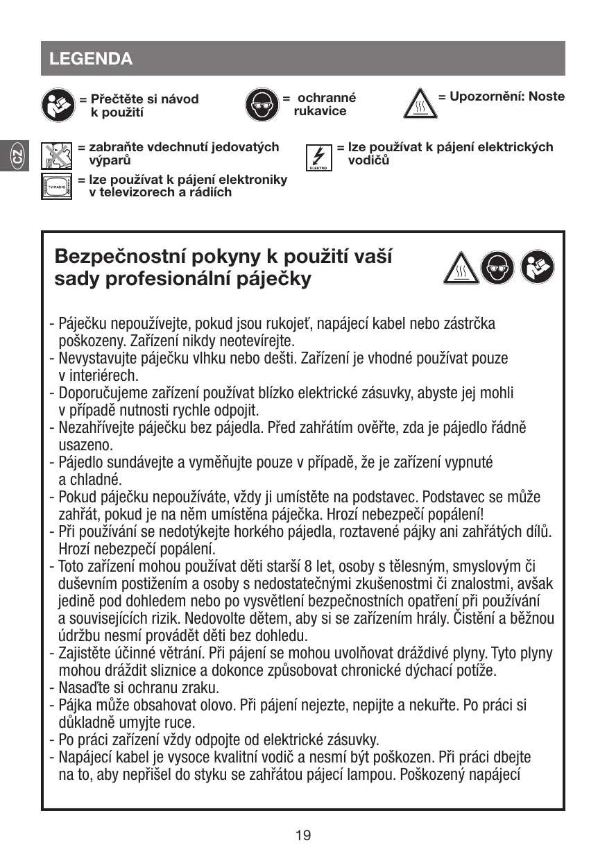 - Ne pas utiliser le fer à souder lorsque la poignée, la conduite électrique ou la fiche sont endommagées. Ne jamais ouvrir l'appareil !