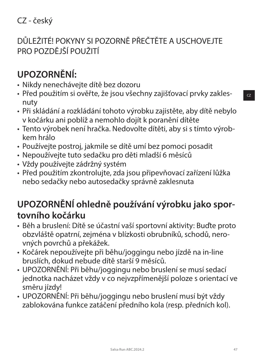 NÁVOD K OBSLUZE SALSA RUN ABC DESIGN