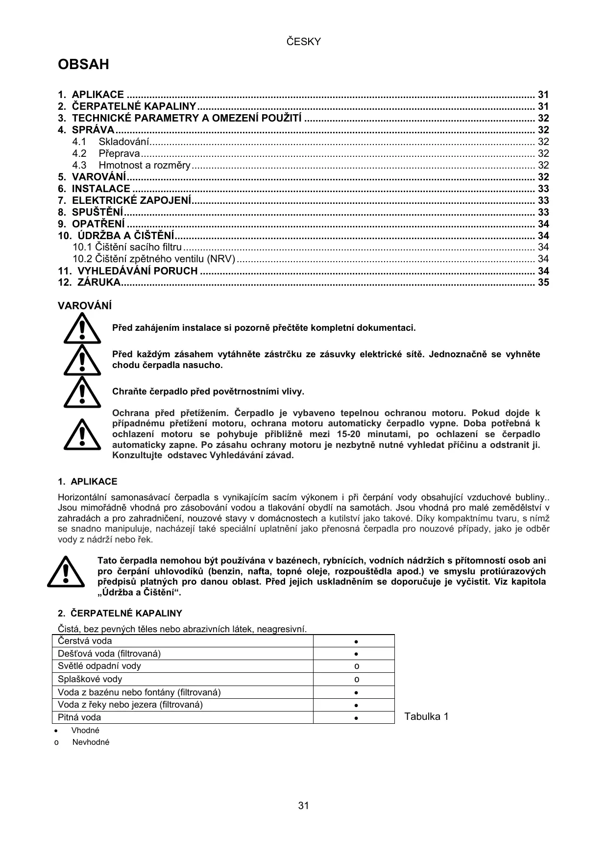 2. LIQUIDES POMPABLES Propre sans corps solide ou abrasif, sans calcaire ou minéralisation excessive.