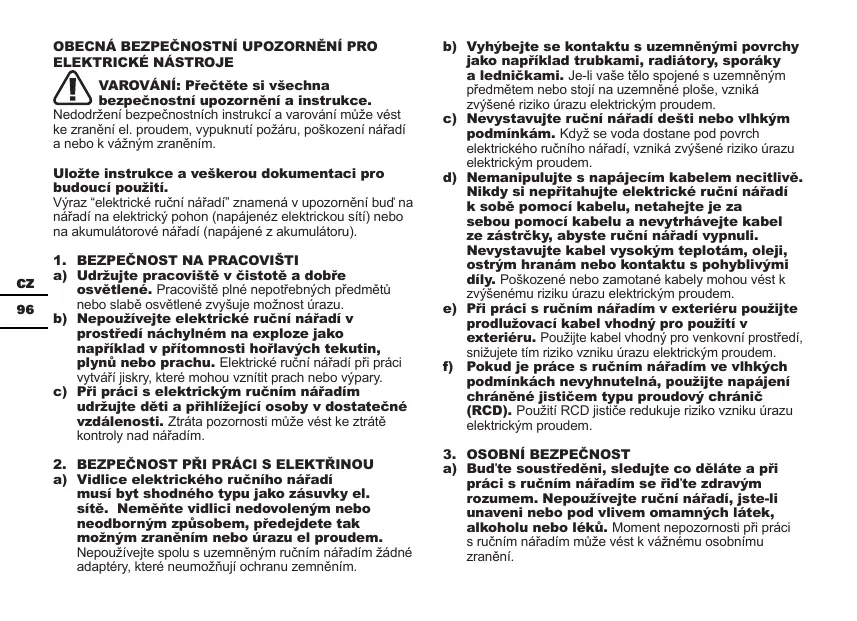 POUZITI A ÜDRZBA RUËNIHO NARADI näfadi netlaëte. Pouzijte sprâvné ruëni näfadi pro danou éinnost. Sprävné ruëni néfadi udëlé préci lépe a takovou rychlosti, pro kterou bylo navrzeno. Nepouëivejte ruëni nâi