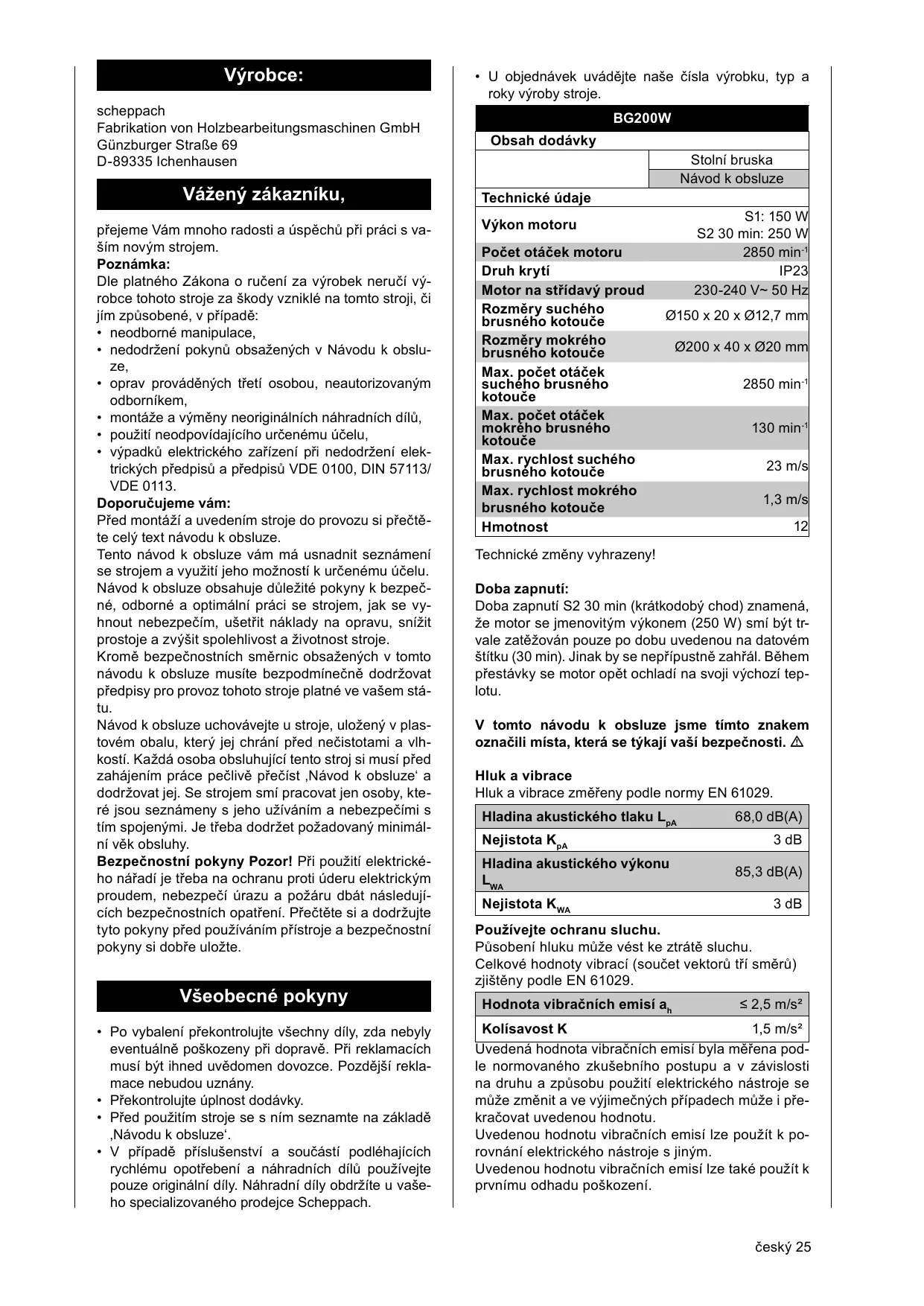 NÁVOD K OBSLUZE BG200W SCHEPPACH