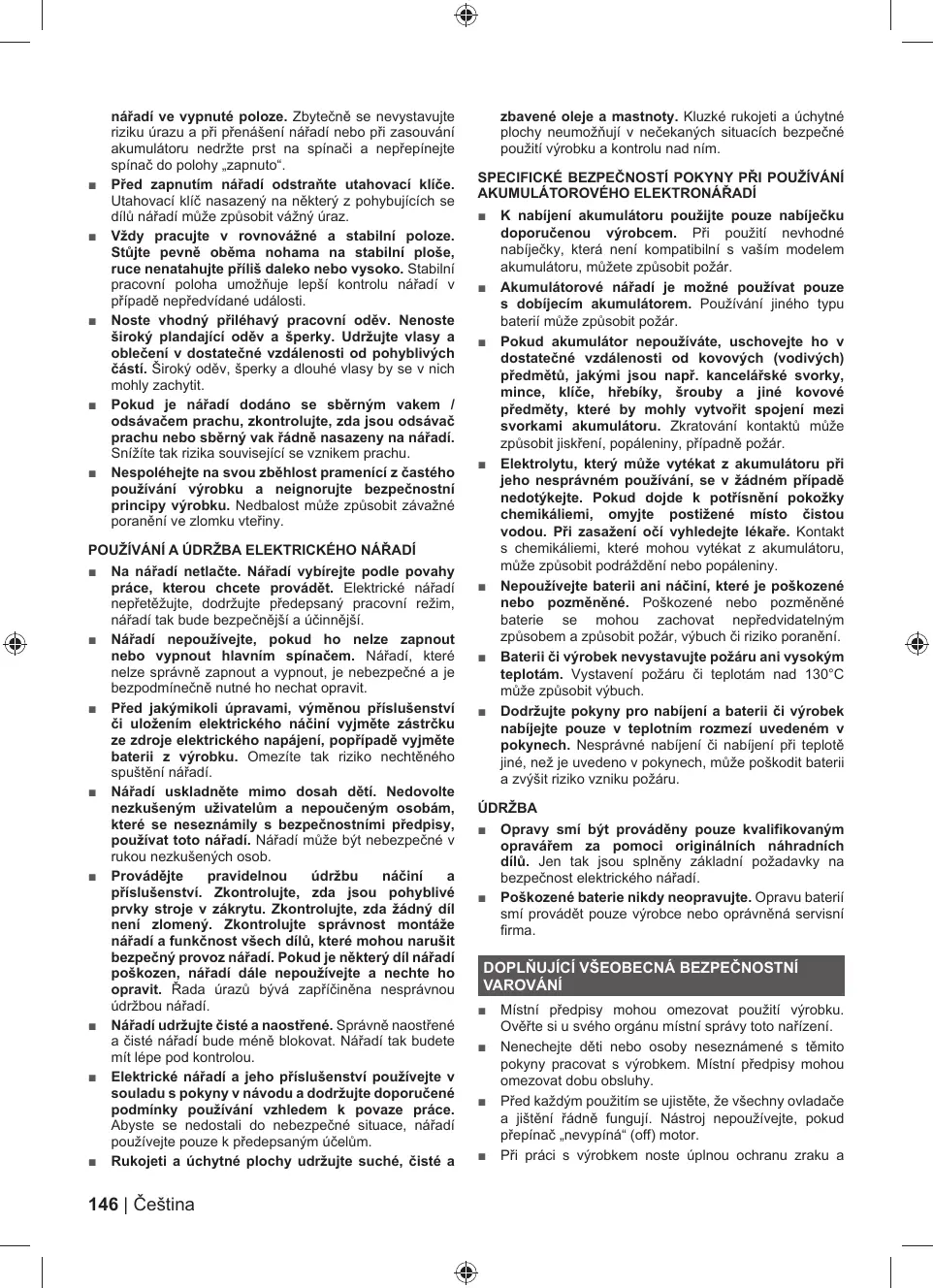 = Suivre toutes les instructions de charge et ne pas charger le bloc de batteries ou l'outil fonctionnant sur batteries hors de la plage de températures spécifiée dans les instructions. Un chargement incorrect ou à des températures hors de la plage spécifiée de températures peut endommager la batterie et augmenter le risque de feu.