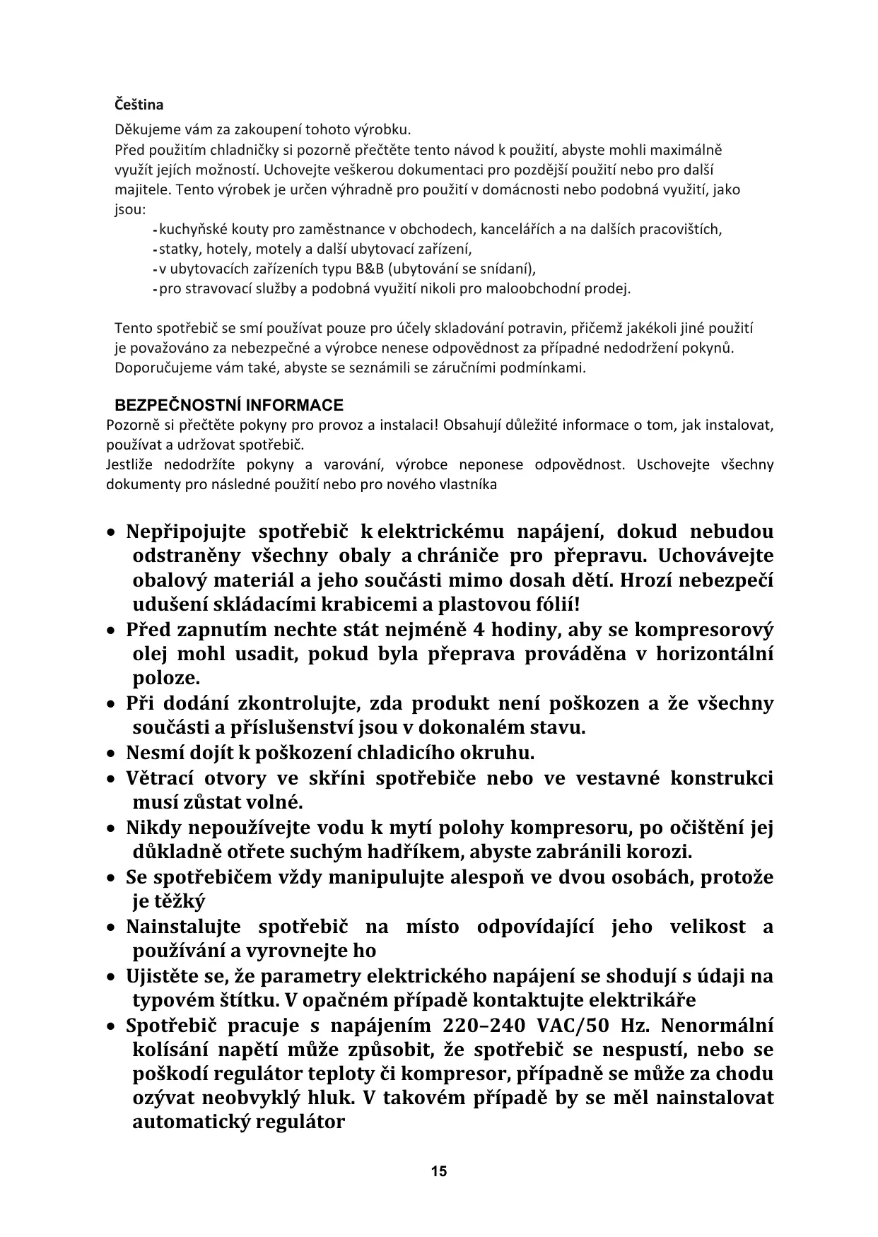 NÁVOD K OBSLUZE CCVB15/1 CANDY