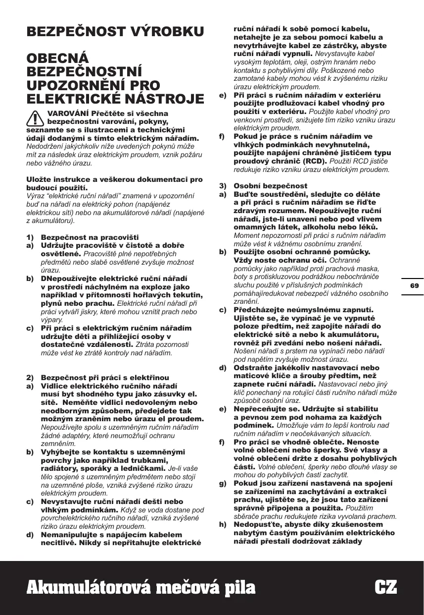 AVERTISSEMENTS DE SÉCURITÉ POUR SCIE SABRE