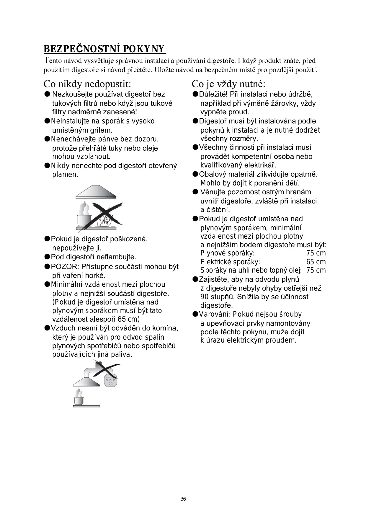 @Quand la hotte aspirante et les appareils alimentés par autre chose que de l'électricité fonctionnent simultanément, la pression négative à l'intérieur de la pièce ne doit pas dépasser 4 Pa (4 x 10-5 bar).