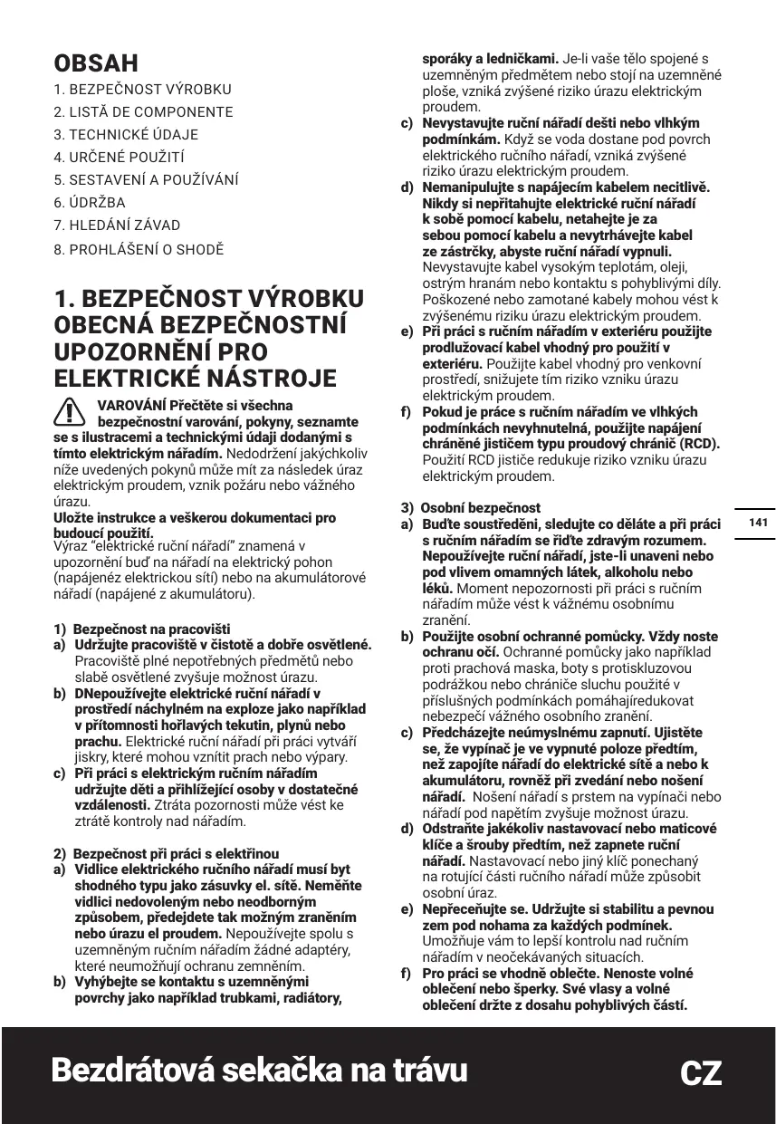 3) Osobni bezpeënost 2) Budte soustredéni, sledujte co délâte a pri préci 141 néFadim se Fidte zdravÿm rozumem. Nepouñivejte ruëni näfadi, jste-li unaveni nebo pod vlivem omamnÿch létek, alkoholu nebo lékü. Moment nepozomosti phi préci s ruënim néfadim müze vést k véänému osobnimu zranén.