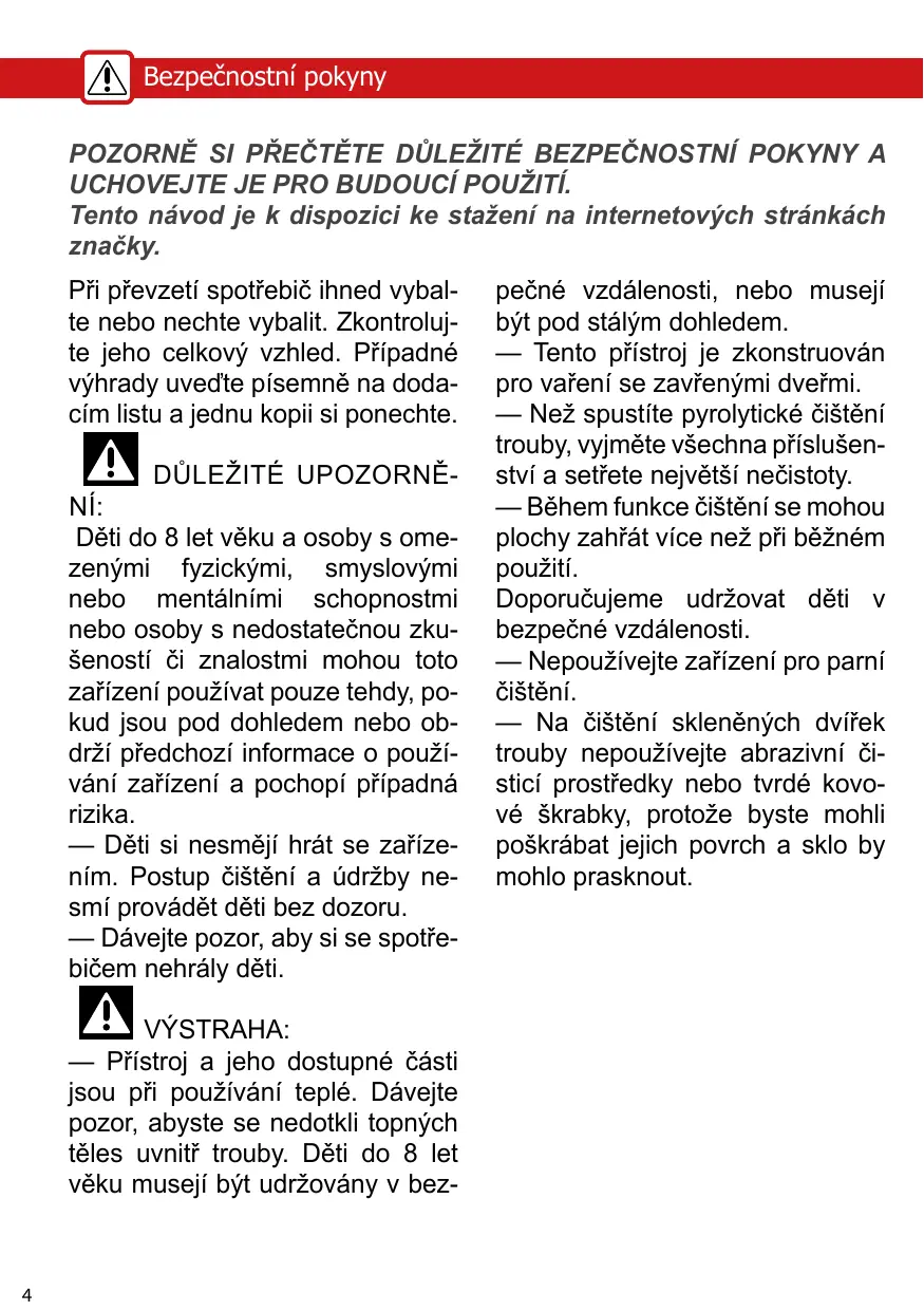 + Pendant la fonction de net- toyage, les surfaces peuvent de- venir plus chaudes qu'en usage normal. Il est recommandé d'’éloi- gner les enfants.