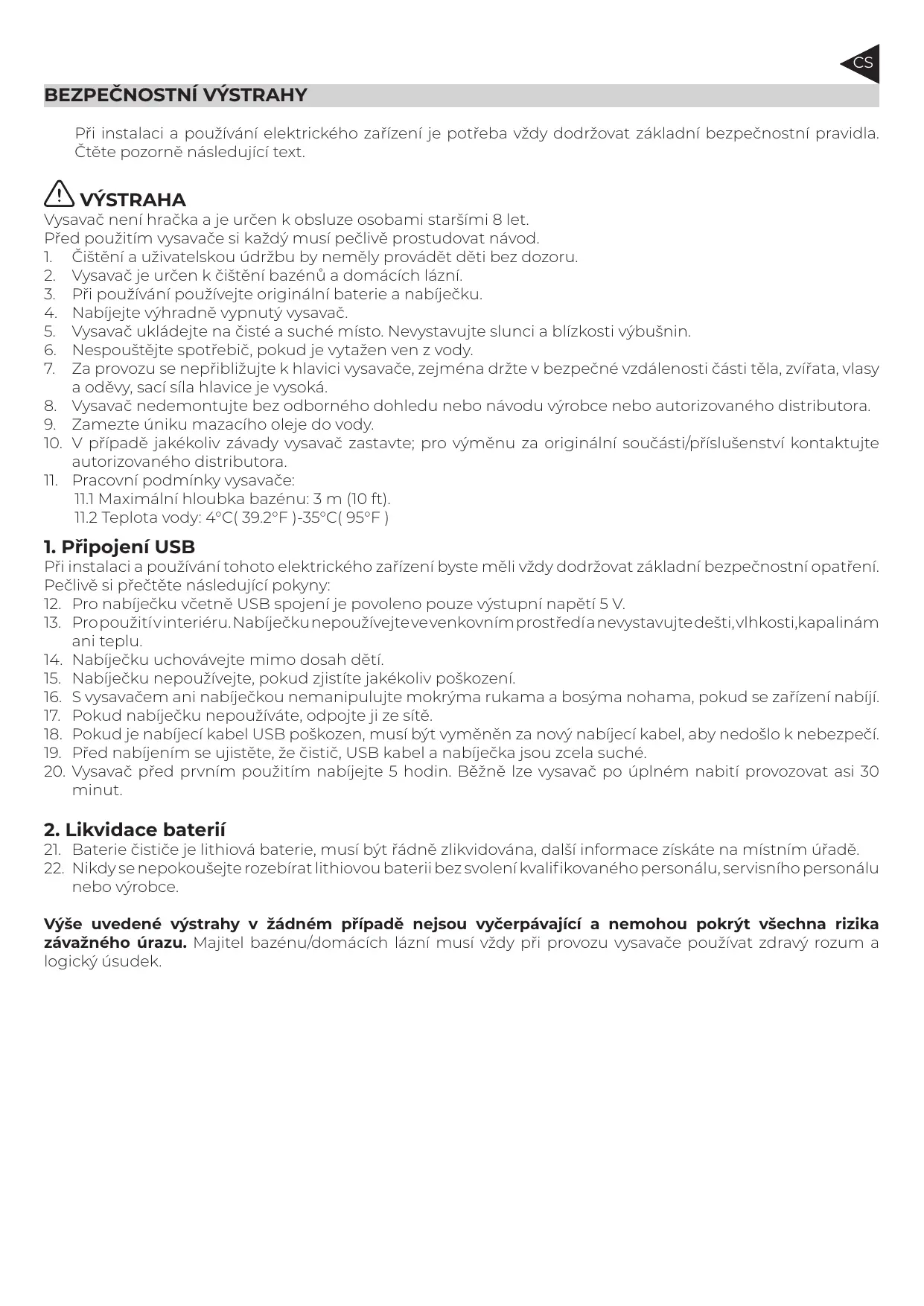Les avertissements et précautions précédents ne sont pas exhaustifs et ils ne comprennent pas toutes les hypothèses de risque ou de blessures graves. Les propriétaires des piscines où spas doivent à tout moment