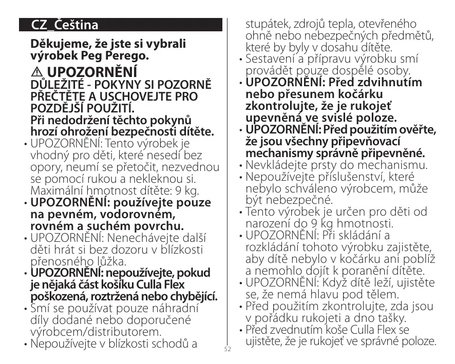 Culla Flex - Kočárky PEG PEREGO - Notice d'utilisation et mode d'emploi gratuit