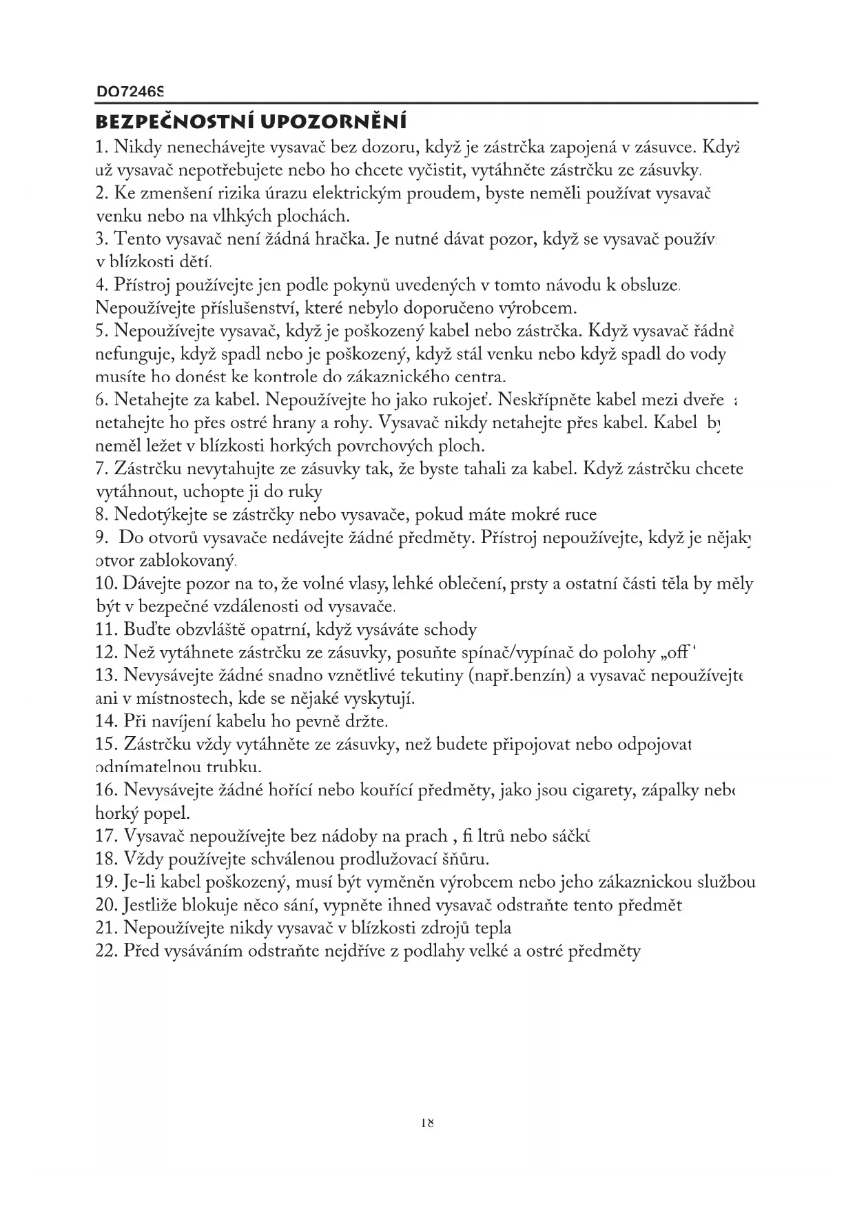 18. Vždy používejte schválenou prodlužovací šňůru.