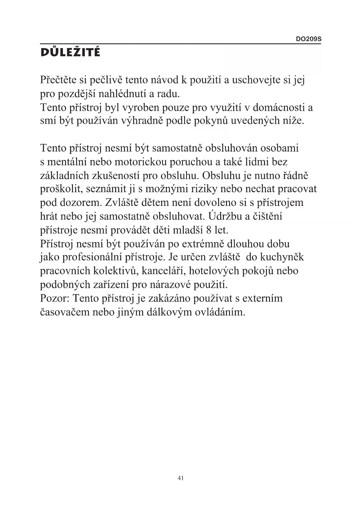 časovačem nebo jiným dálkovým ovládáním.DO209S